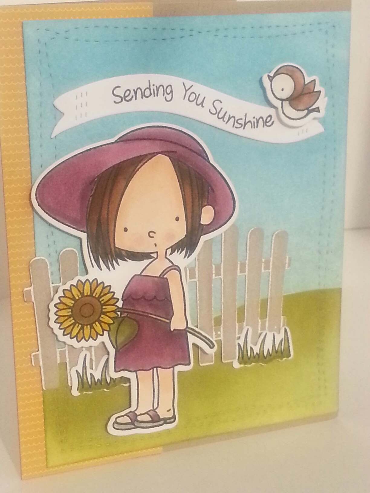 Such a cute card, Kellianne! Beautiful coloring, and I love how you placed the little bird on the banner…so sweet! Thanks so much for playing along with us this week at ATSM!