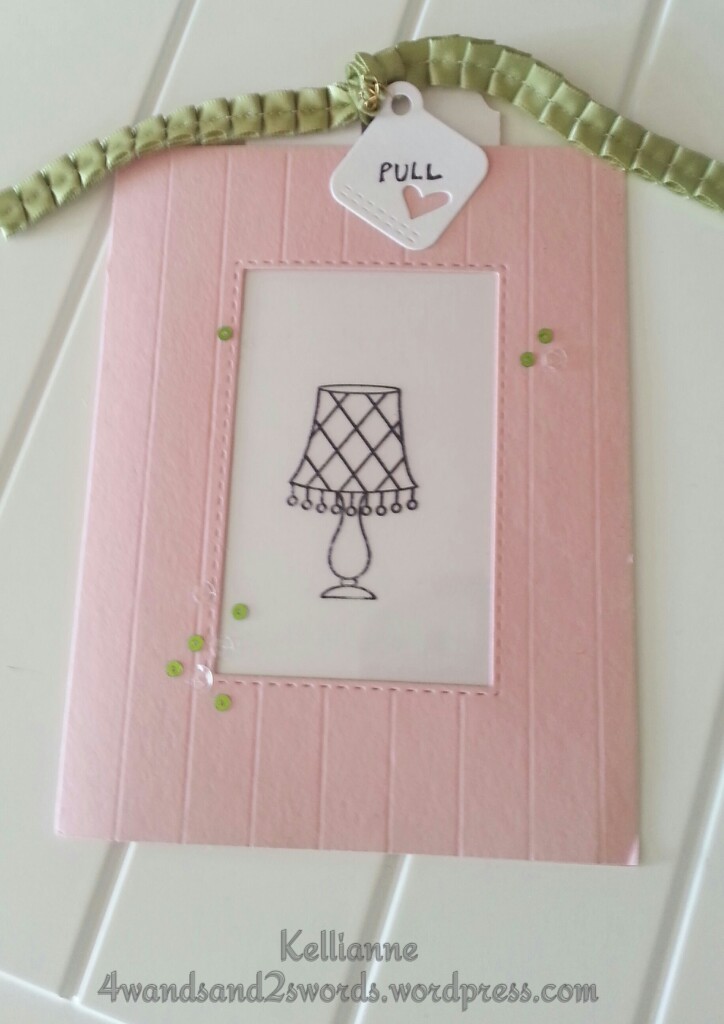 My sweet 8 year old daughter loves it when I make a card that has a little “trick” to it. She keeps me thinking creatively when it comes to those things! So the other day, when she was feeling like one of these special kind of cards, my memory recalled this technique. With some acetate and some accurate stamping, it’s actually so simple but gives a really fun “wow” to anyone who gives the tab a pull.