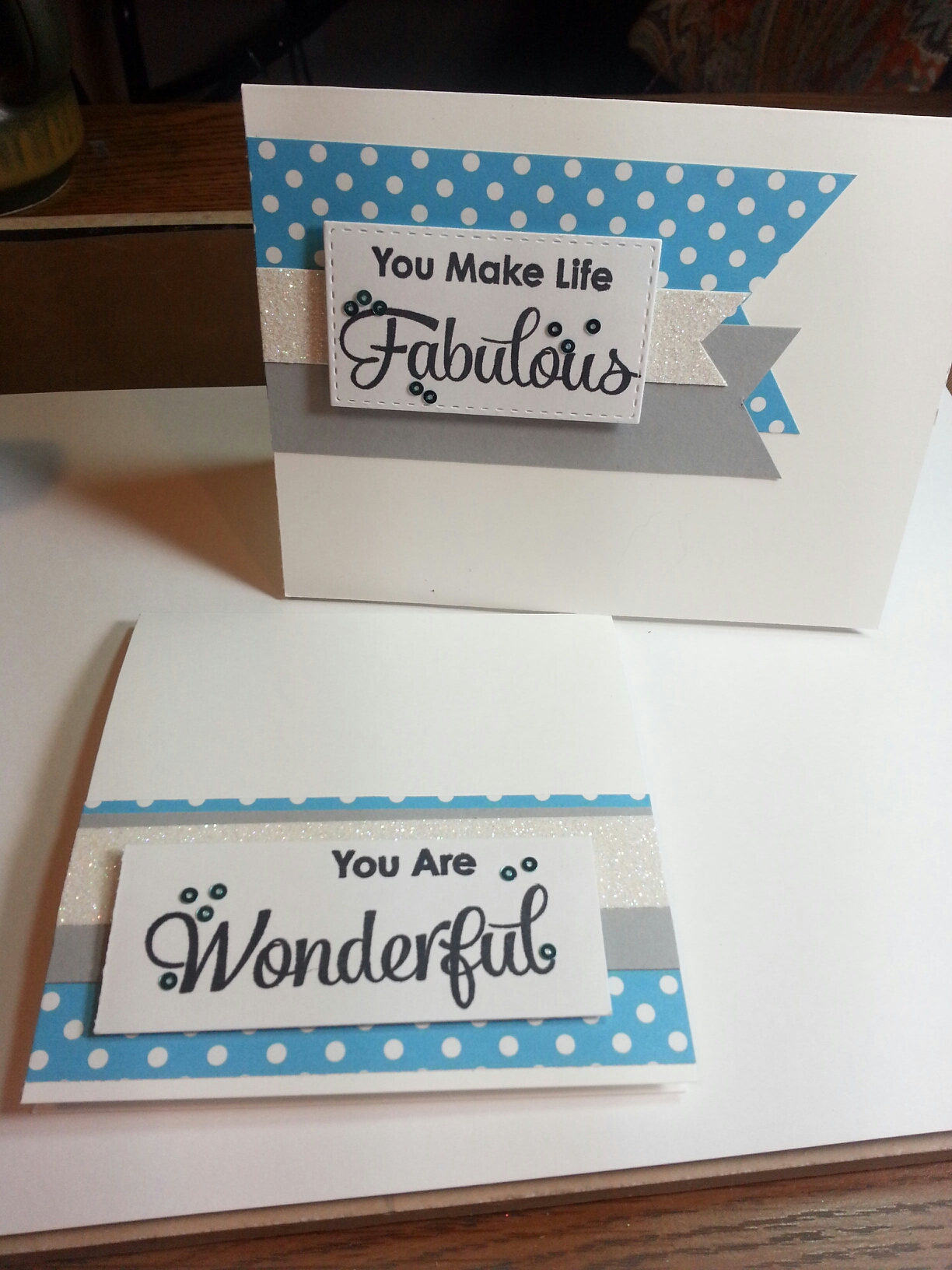 I needed two quick thank you cards. So I sat down to my stamp desk and with a few scraps leftover from other cards, I threw these together fast. I love this “fab sayings” stamp set by mft!