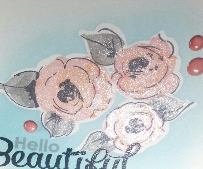 I used Painted Flowers by Altenew and Simply Fab sayings by My Favorite Things (a stamp set I grab frequently!) I brushed a Spectrum Noir glitter pen over the flowers to finish it up.
