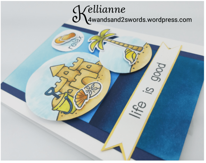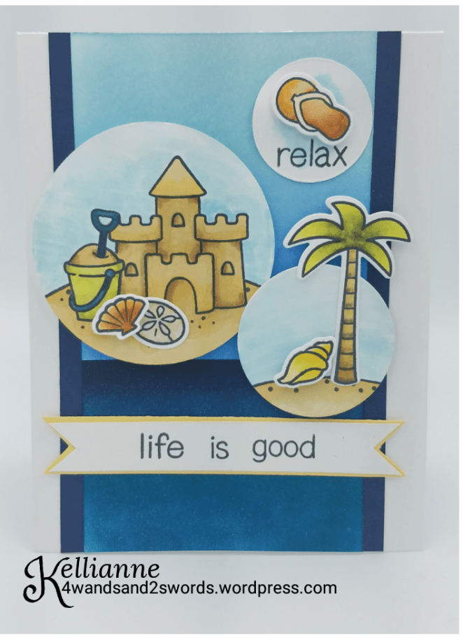 What a darling card!!! It makes me want to put my feet in the sand, lean back on a lounge chair, and and enjoy the sun and surf. The colors are calm and inviting, and you’ve created a pretty scene. Thanks for joining TGIF Challenges this week.
