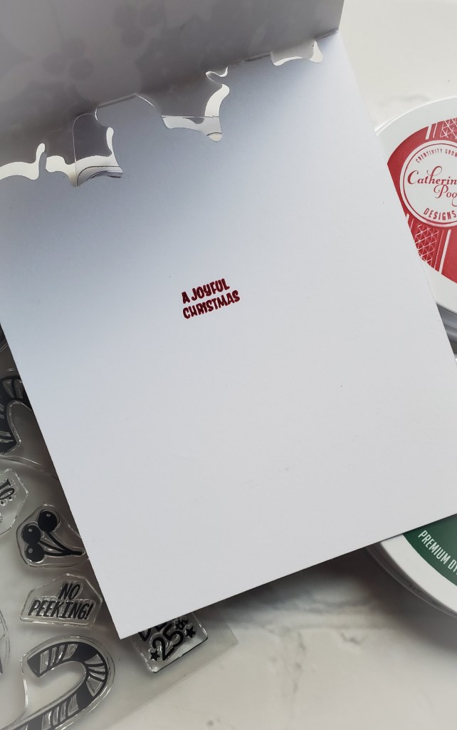 If you look closely, you can see that the holly at the top hangs over the folded edge. Here is the inside of the card that gives you a better glimpse