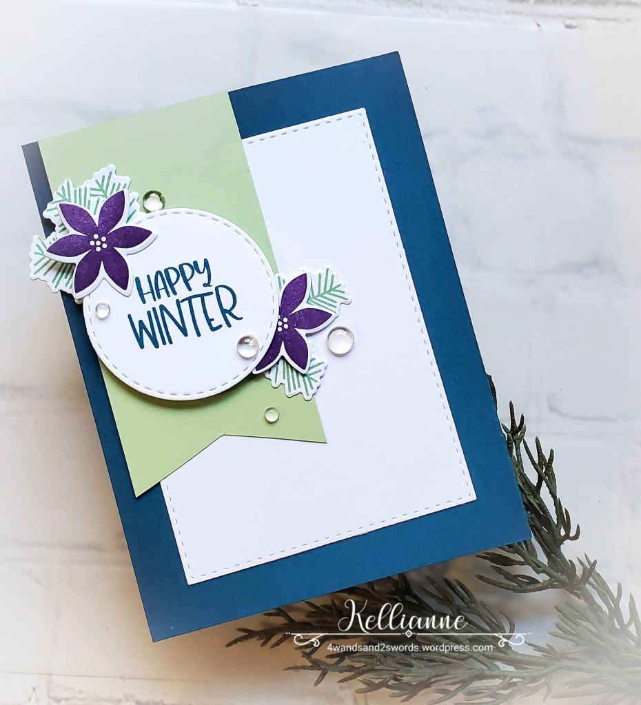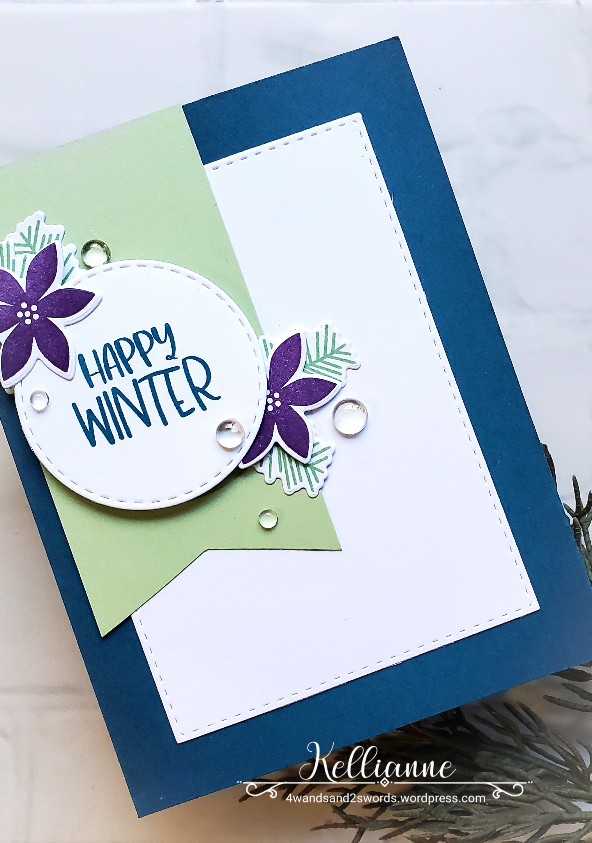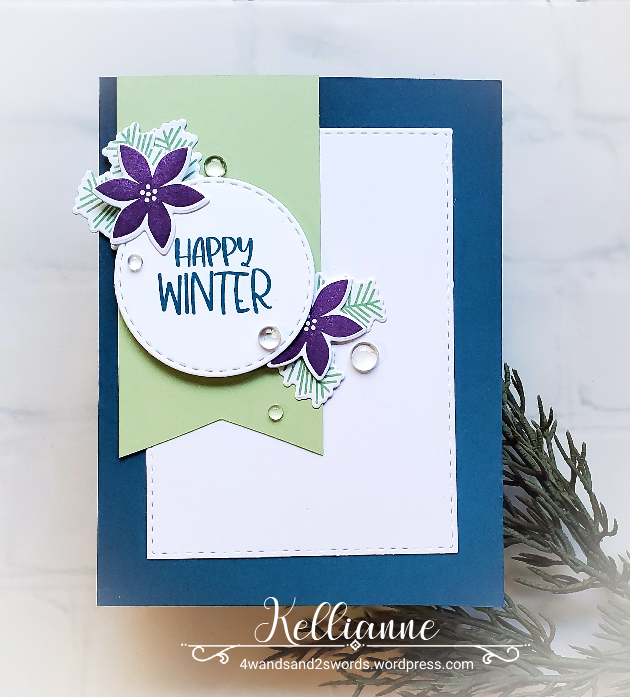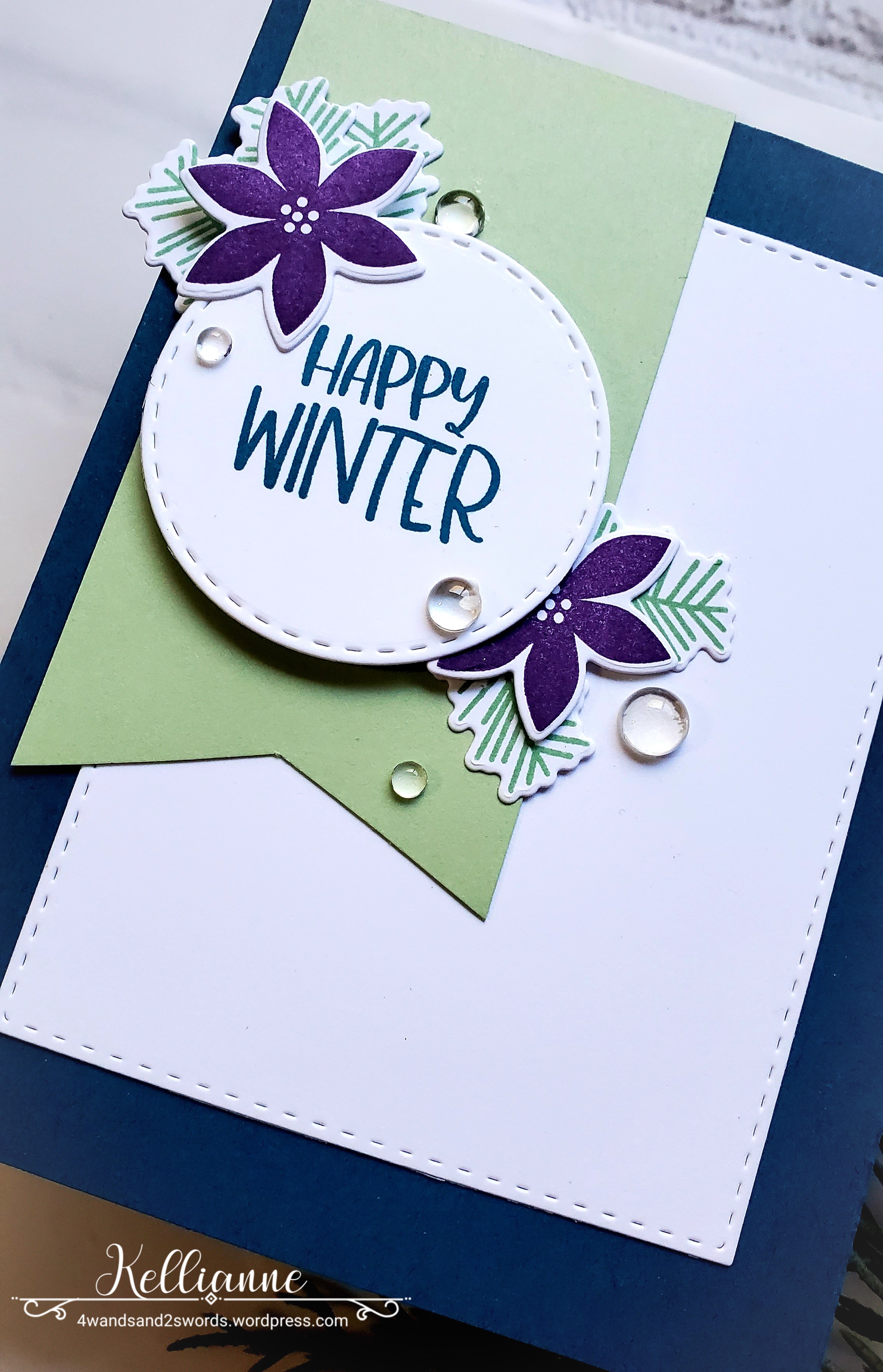 Oh my, being an Arizonian love the first card and sentiment… beautifully done and like how you brought the circle over the edge for your interpretation of the sketch. Your Winter Holiday card is beautiful and lovely non-traditional colors and love the layering and placing of your flowers around the sentiment… beautiful.