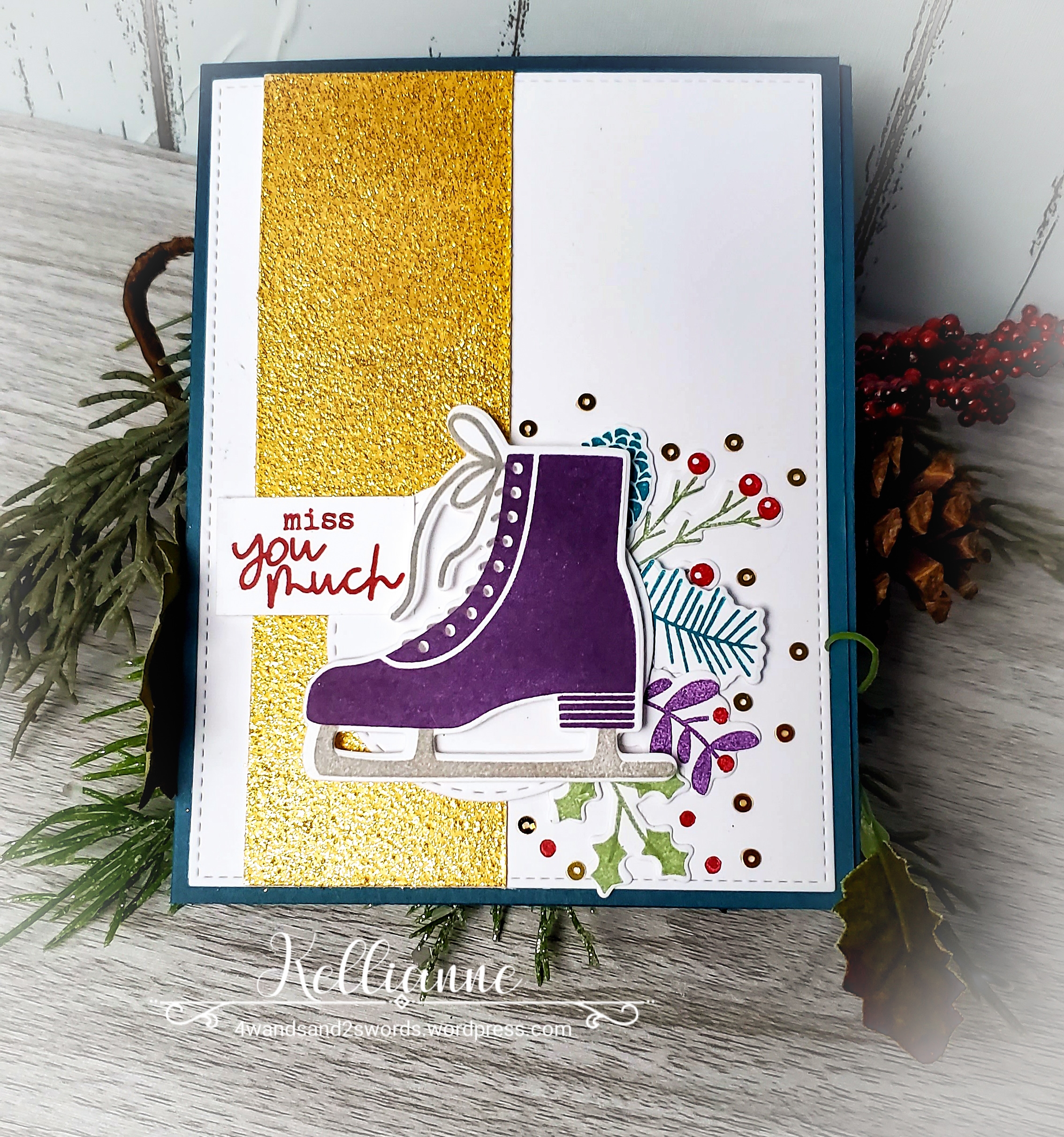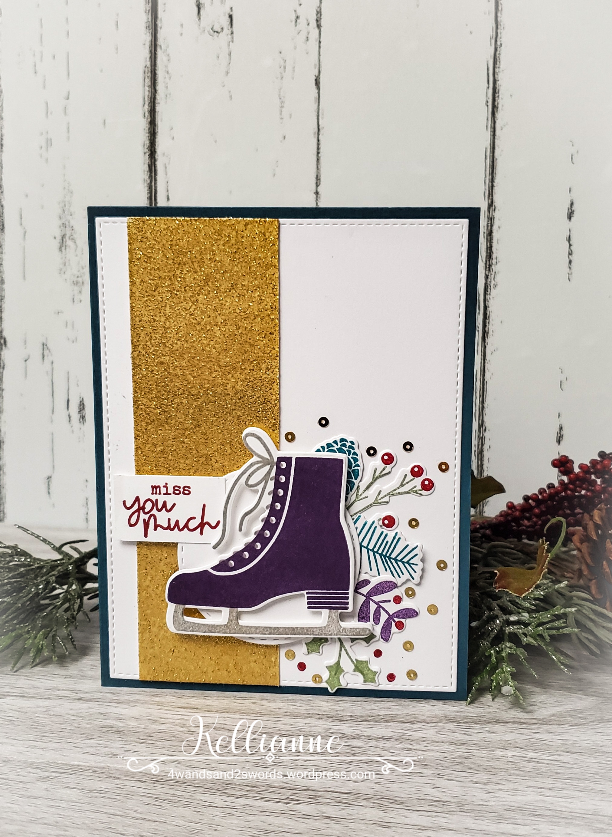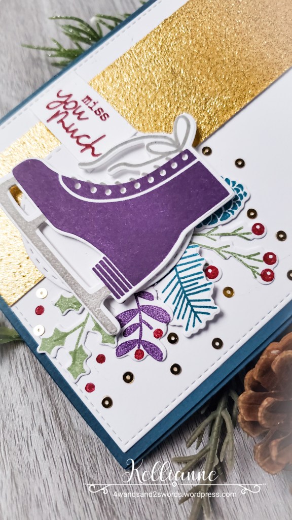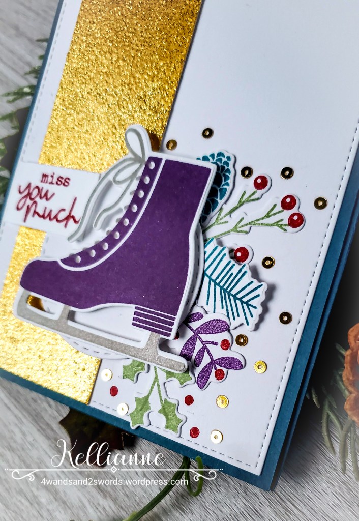 Isn’t that ice skate just so cute?! I love all the winter foliage that comes in this stamp set
