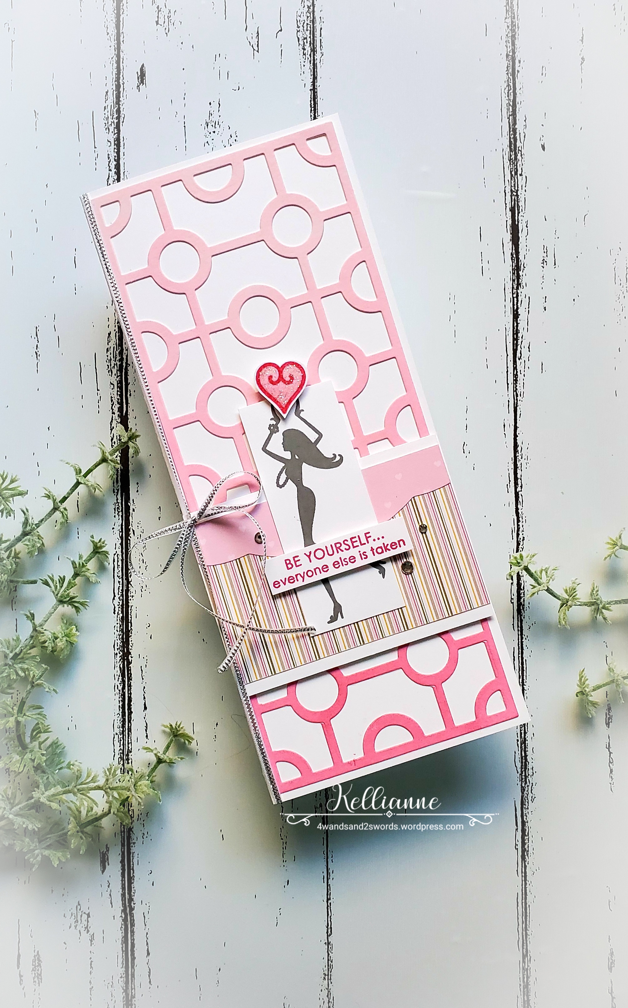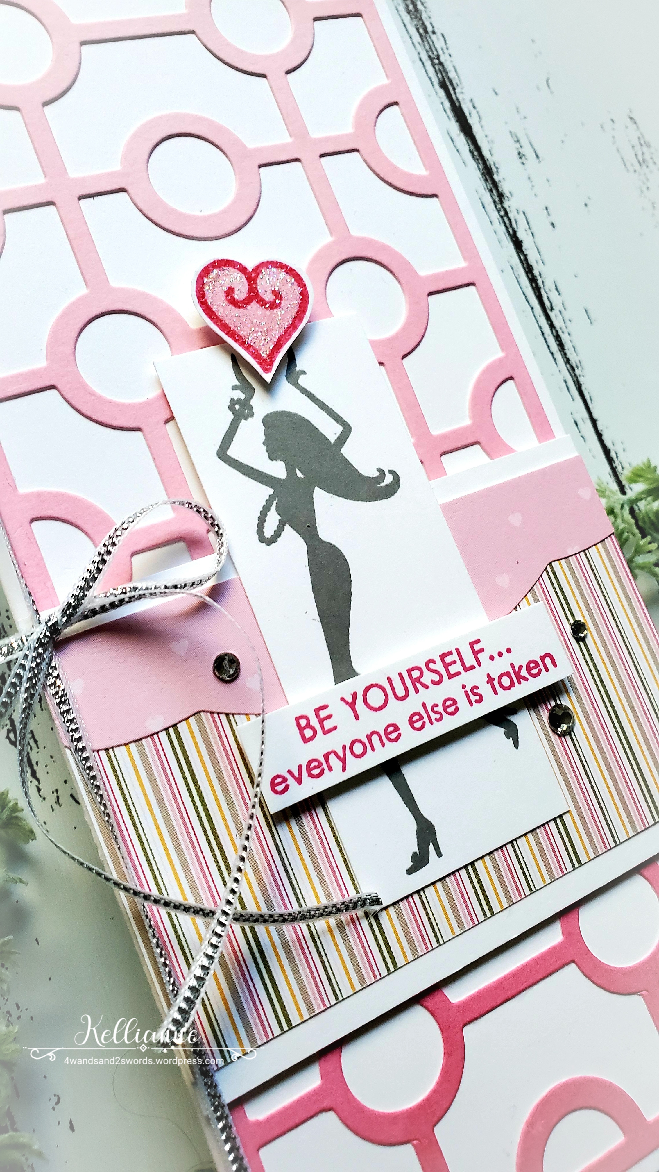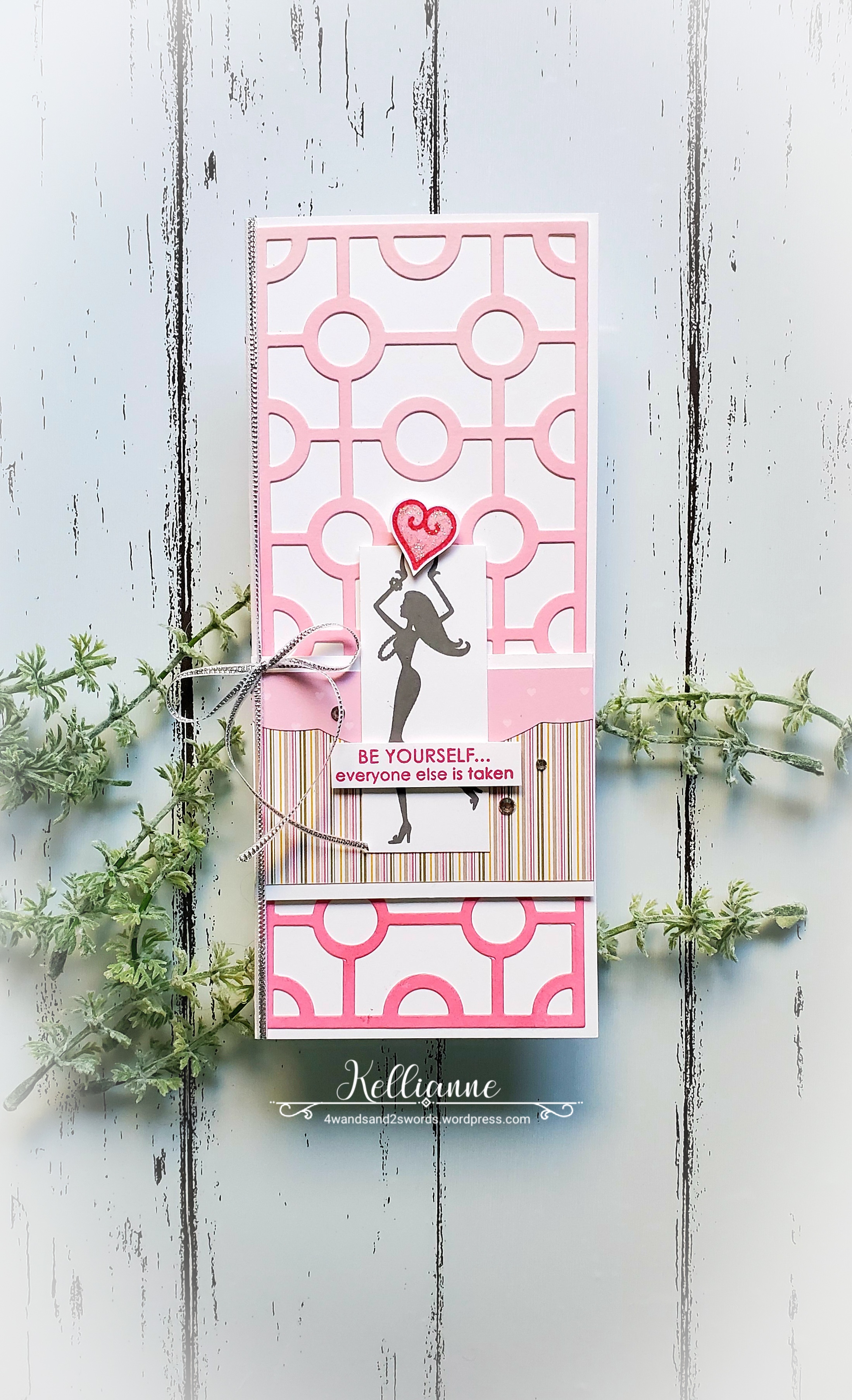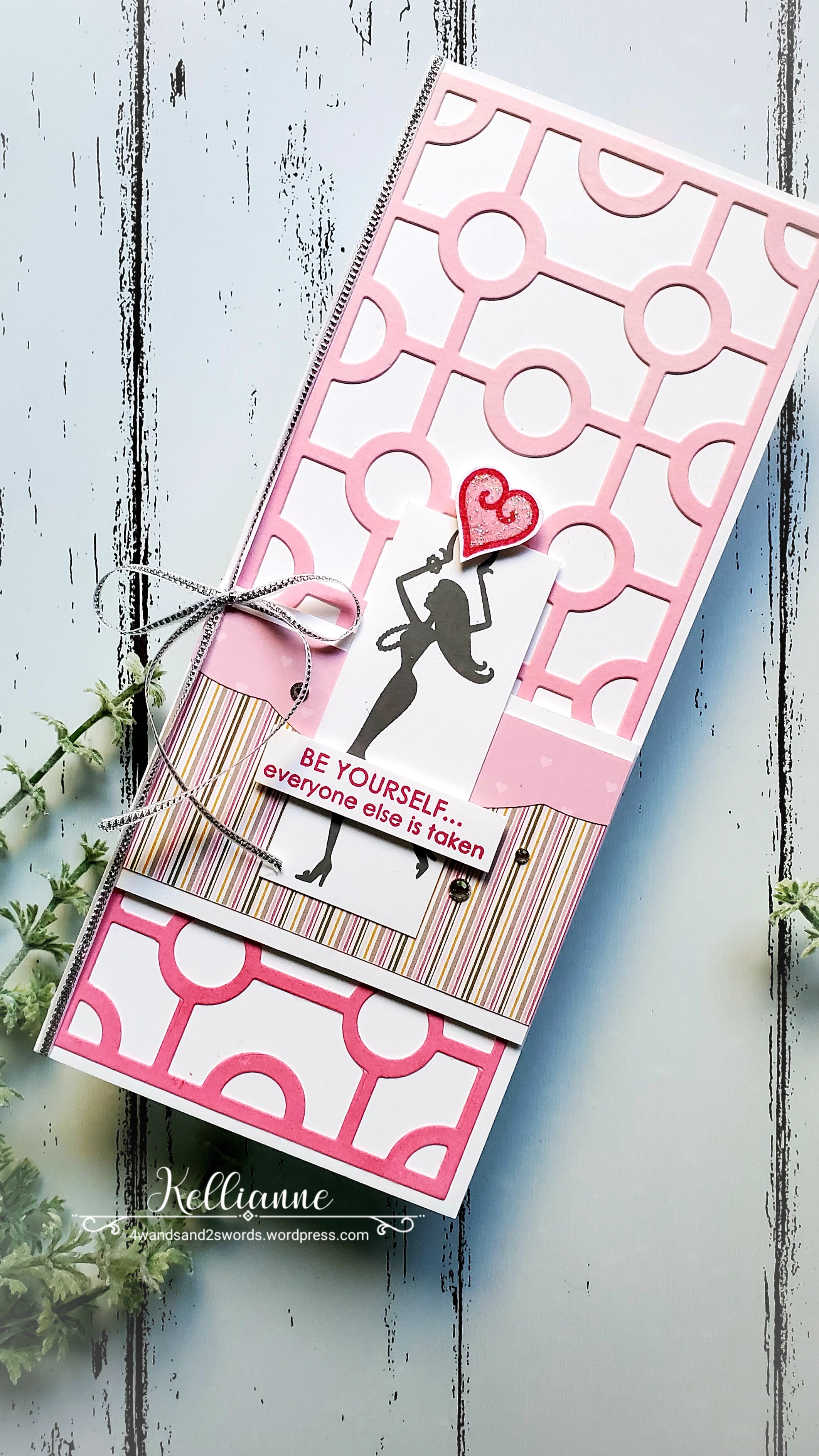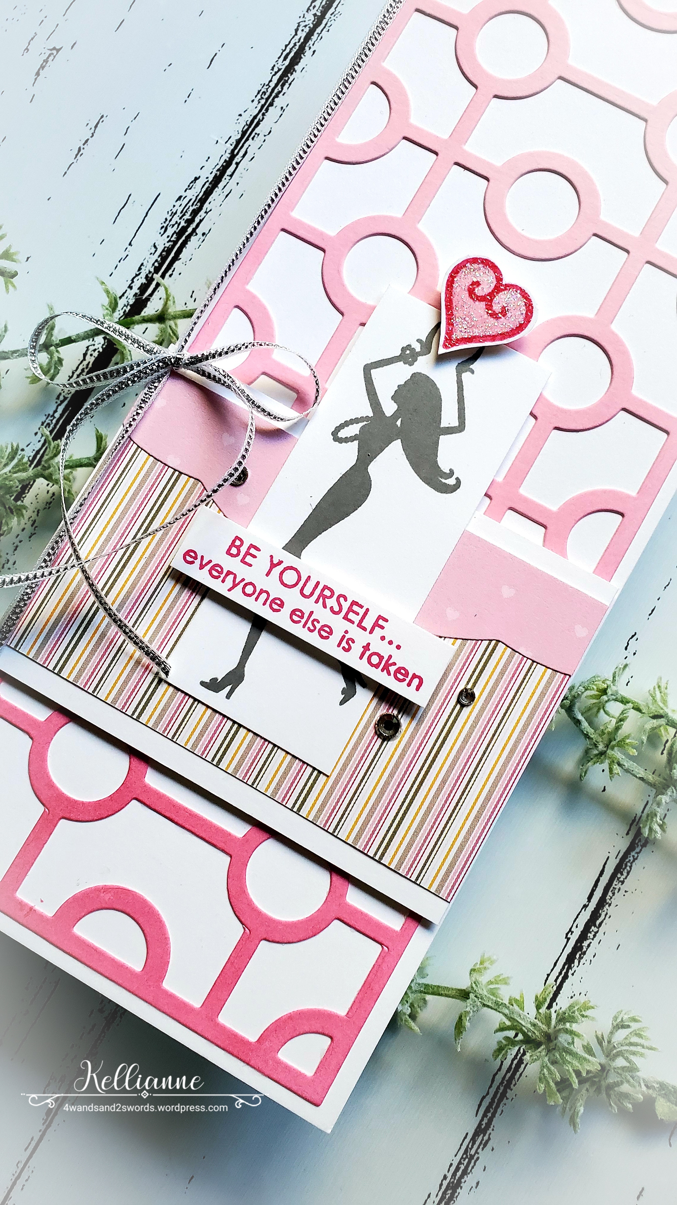 That cute slimline background die is from Catherine Pooler. I did some ombre ink blending with her beautiful inks – Pink Champagne and Party Dress