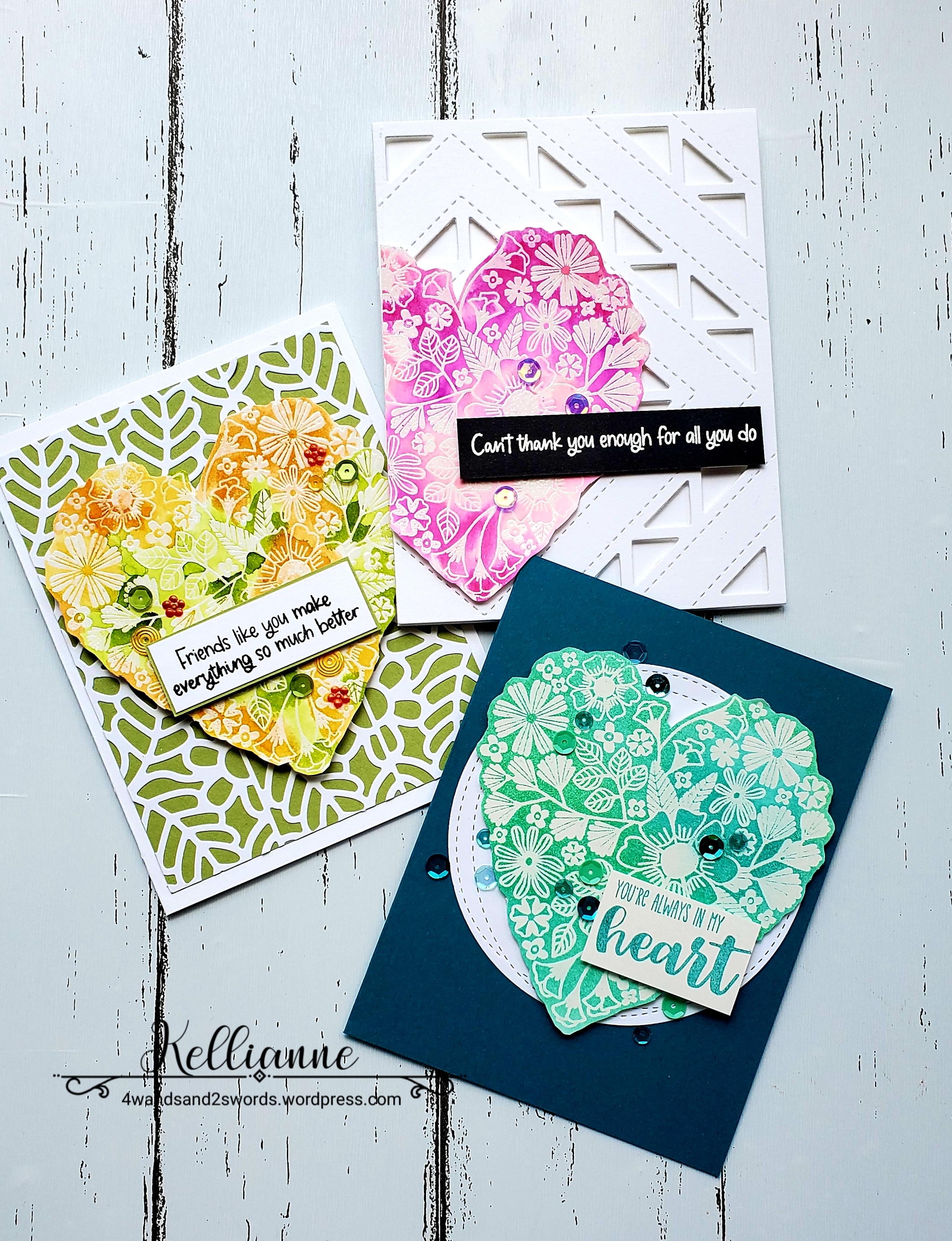 All three of your cards are impressive, Kellianne! I do like the one you shared with us at Try Stampin’ on Tuesday!. The background is really something, and the central pink heart is beautiful! Thank you for sharing your creative talents with us at TSOT!!! -Donna