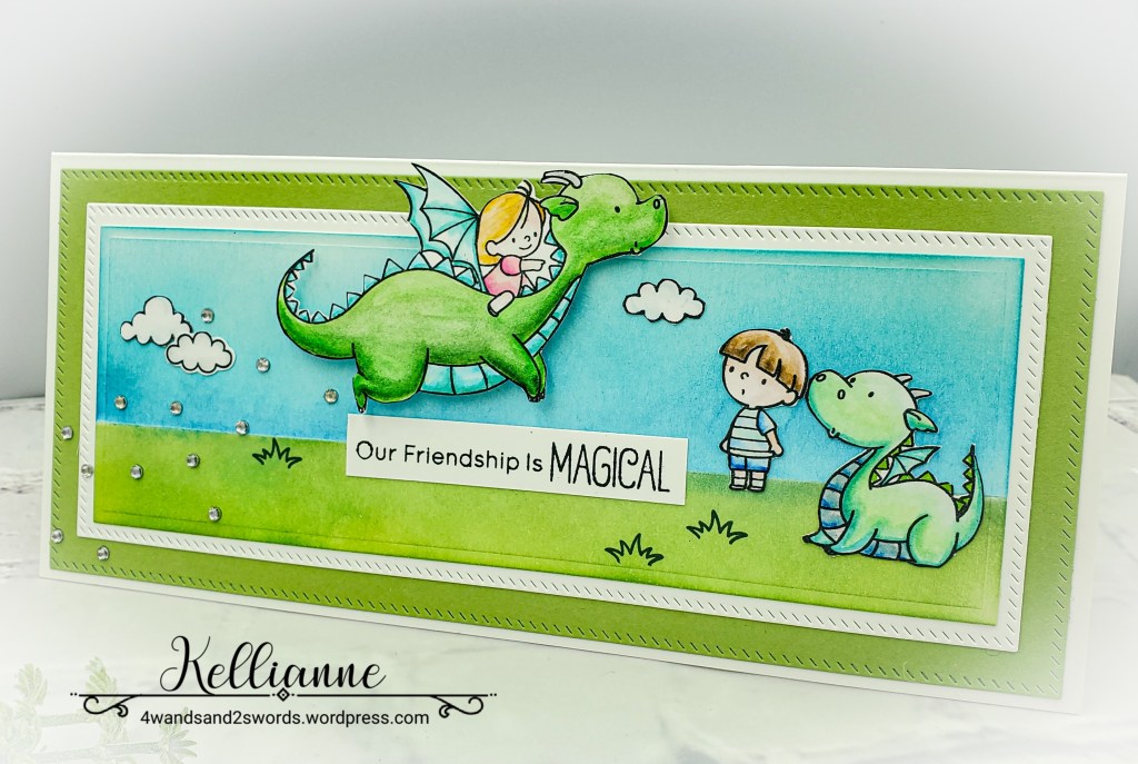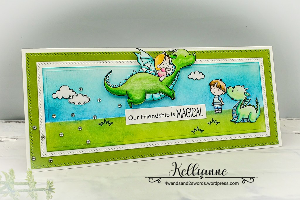 It’s time to pull out all the “magical” themed stamps! I chose dragons for my card