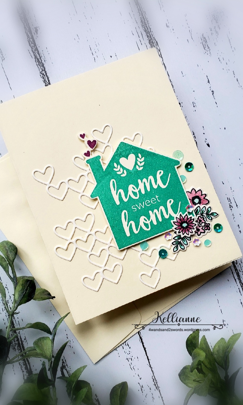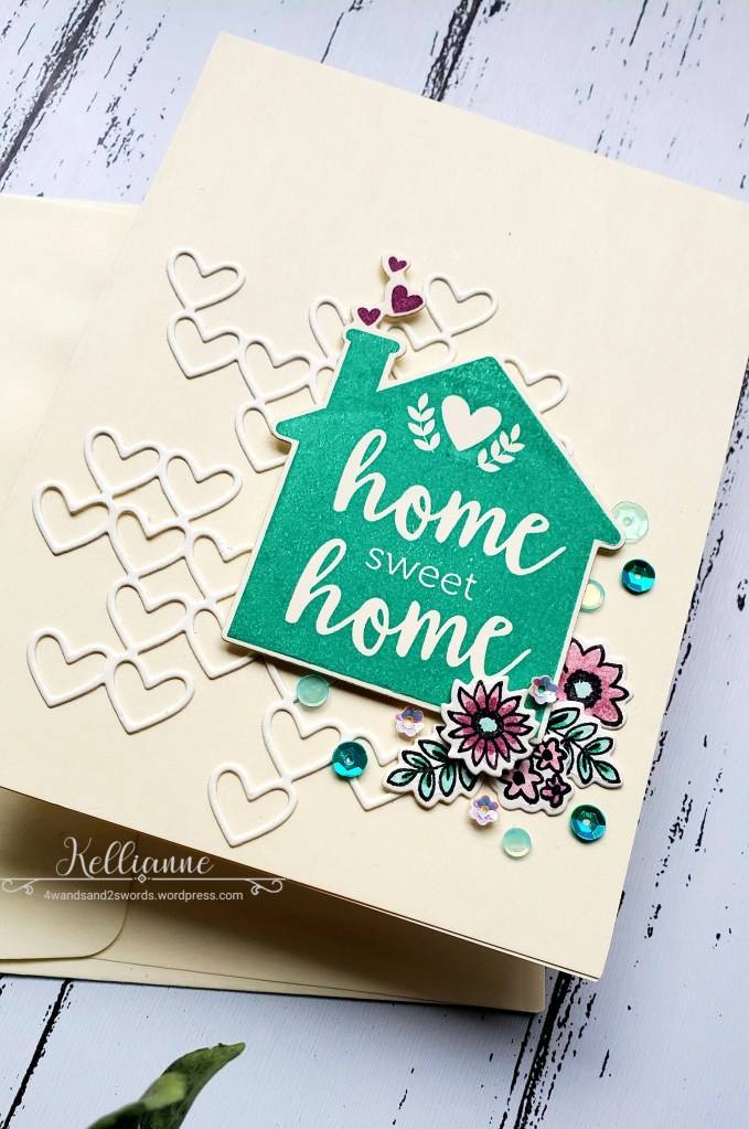 This is so adorable, love that heart diecut for your background, and your turquoise home is adorable, and adding the little corner floral is perfect. Fun and very pretty card.
