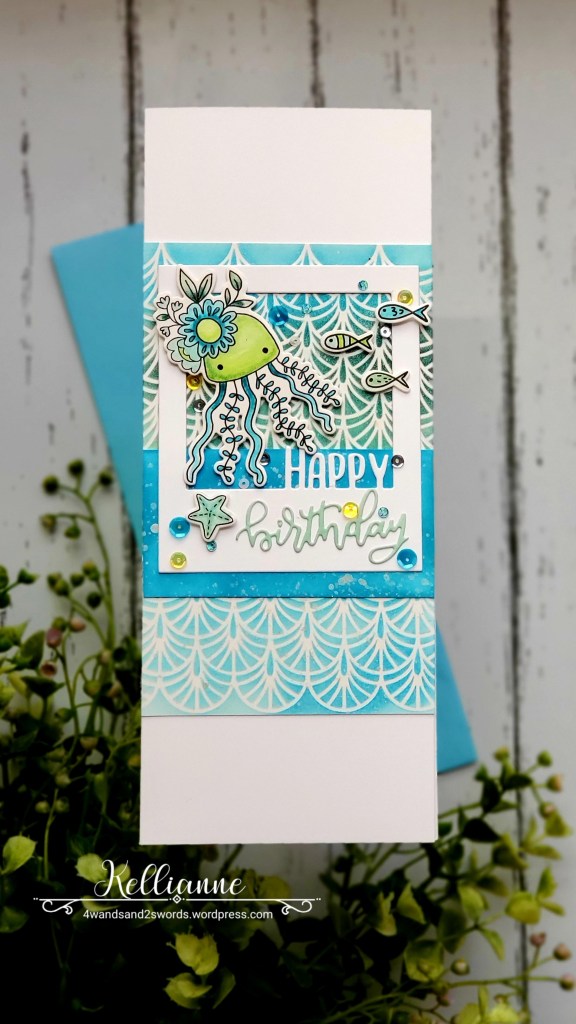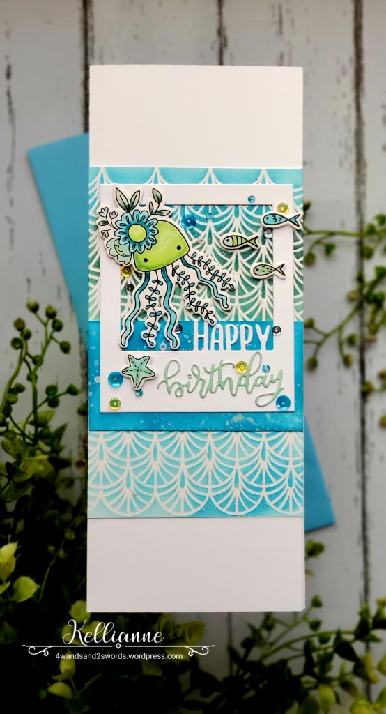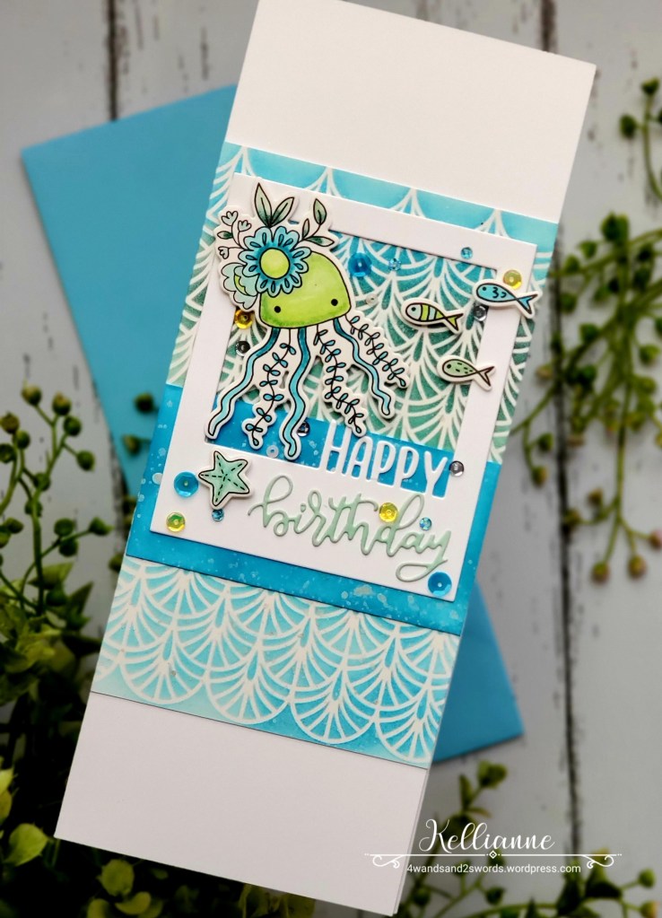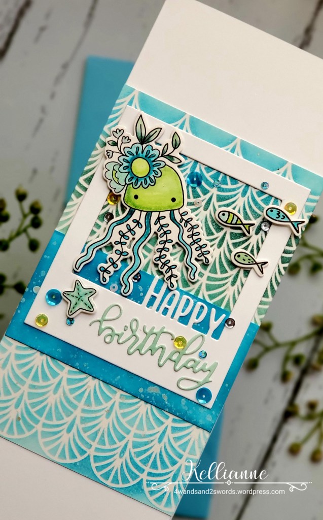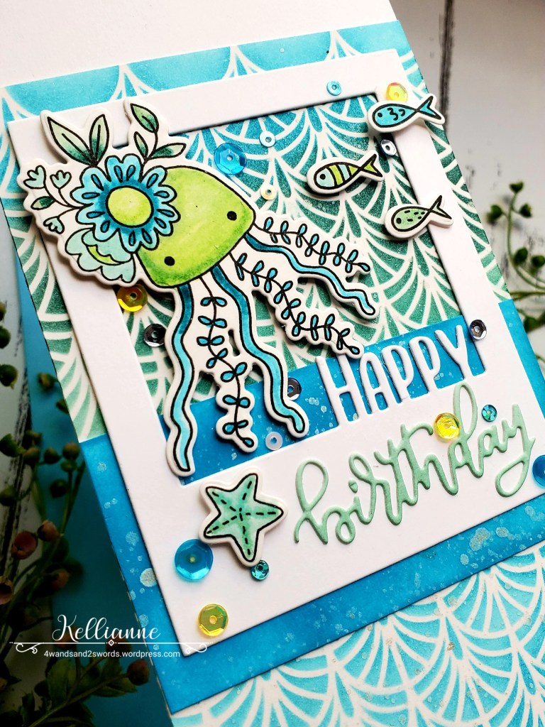 Thing 3 is asking to see a birthday card so I went along with that theme to create this fun Jellyfish happy birthday