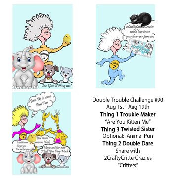 Head over to Double Trouble challenge blog for all the details to play along! For this challenge, we are partnering with 2CraftyCritterCrazies. So after you have made a card with a fur baby on it, be sure to head there to enter your card!