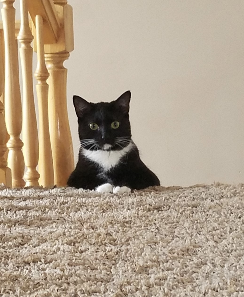 - He sat at the top of the stairway, watching whatever we were doing, just like this