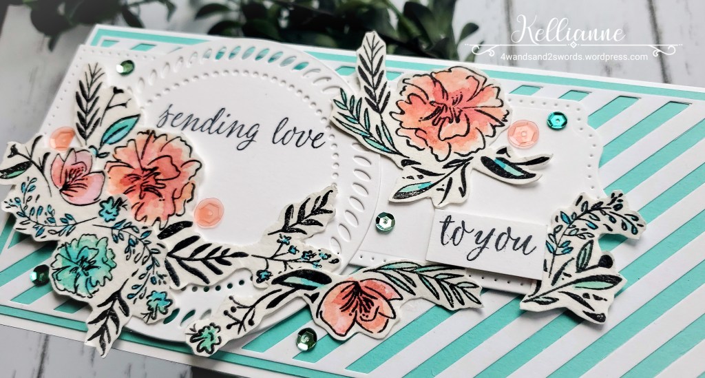 I used a simple ink pad water coloring to color the flowers and leaves. Then I added some sequins to give a little sparkle