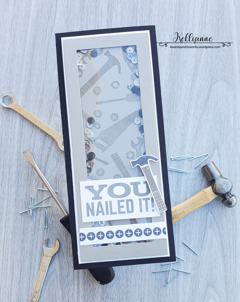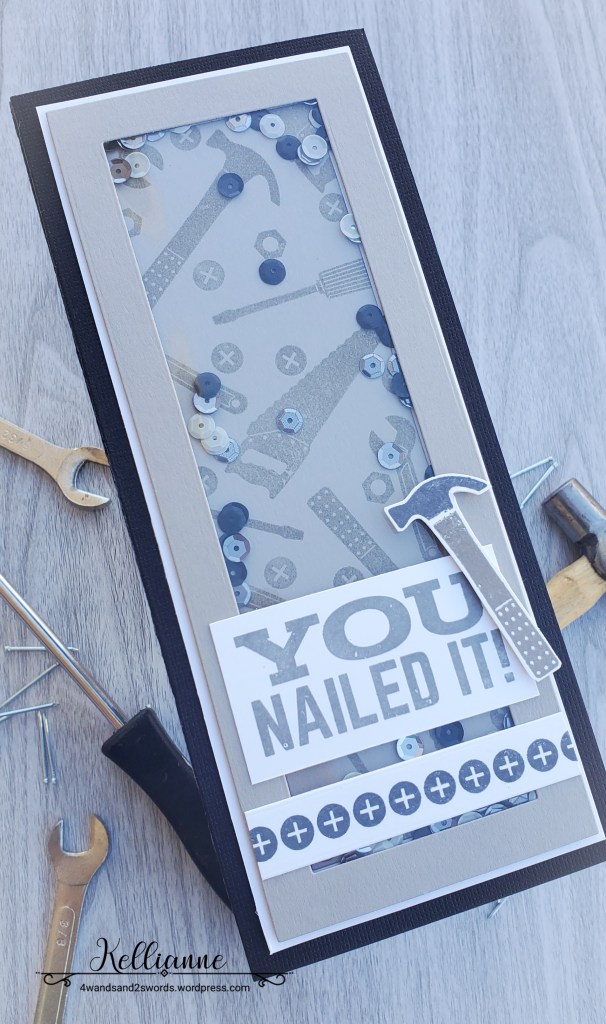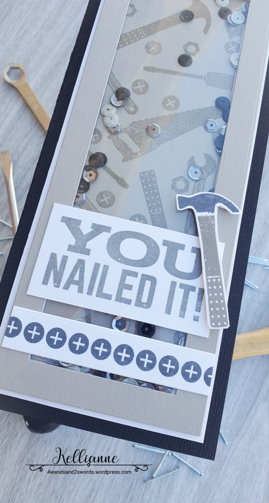 We did a HUGE remodel on the home that we bought here in Texas. The guy who oversaw it did so much work and we have been so very happy with all that he did. He really did nail it! He just finished a few days ago so I made this card that we’ll add a gift card in for a giant thanks! This was also a personal challenge because I just do not make very many masculine cards