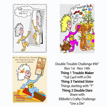 Thing 2 always likes to team up with a partner and this time around it is with Ellibelle’s Corner. If you used a die on your card, be sure to link your card over there too!