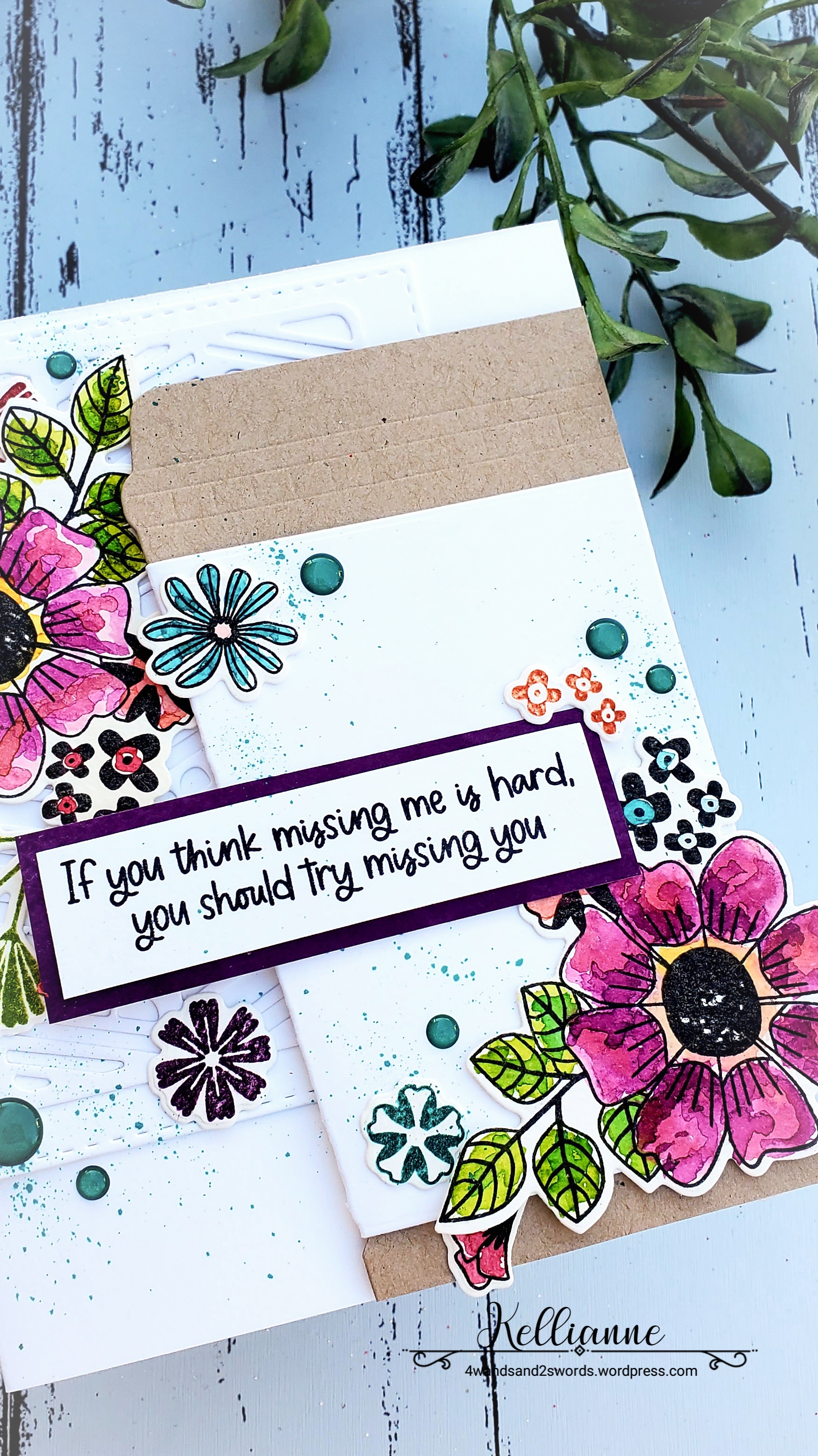 How creative! This is such a pretty card. Love the colors you chose for the flowers and such a great design.