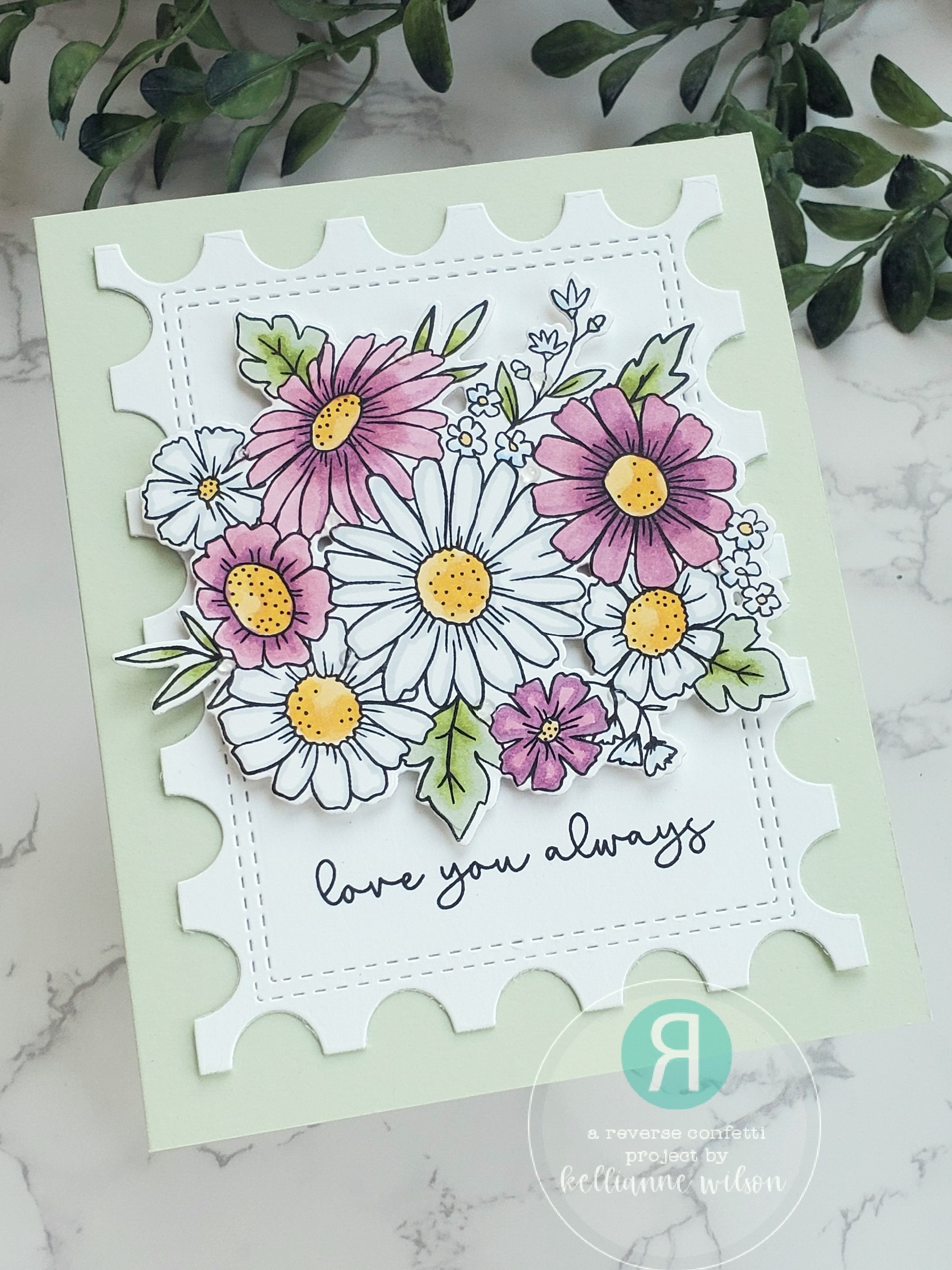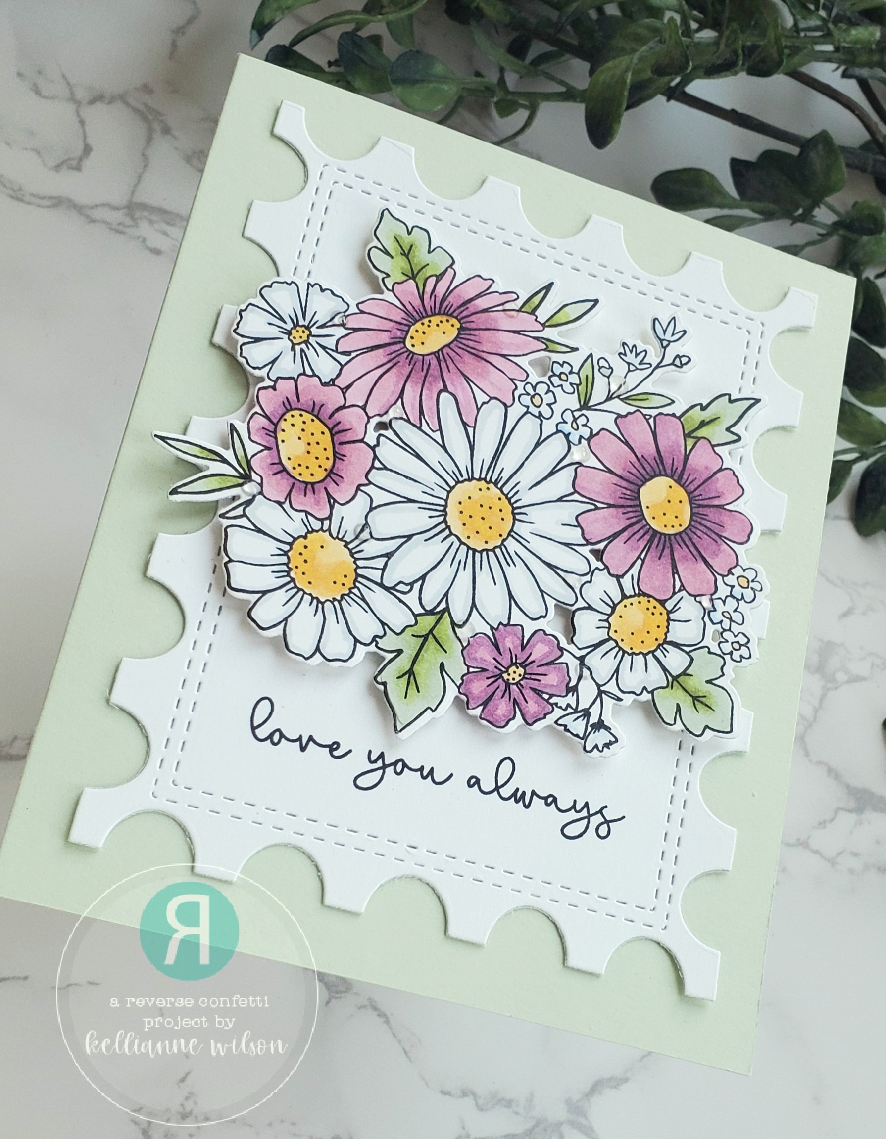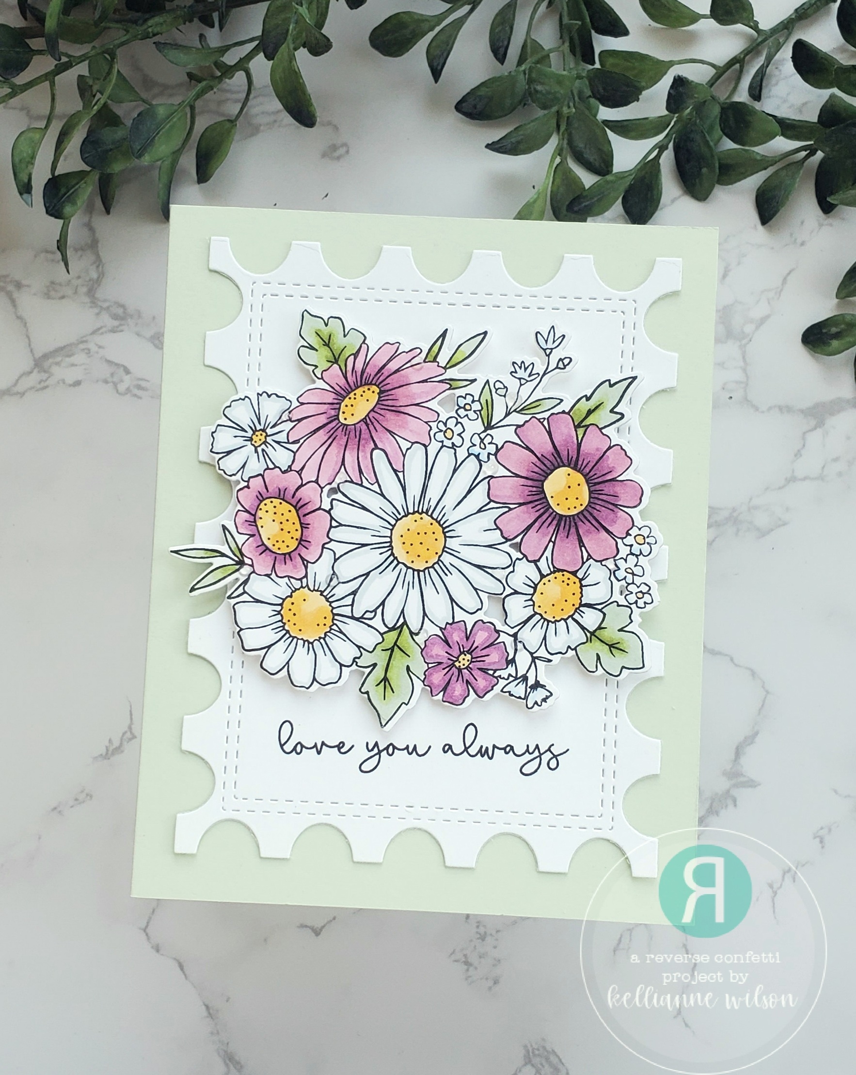 The “love you always” is from the Valentine’s Sentiments stamp set. With this all put on to a soft green card, my sweet Spring card is all done
