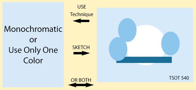 I used shades of pink for my monochromatic color and the flowers are positioned in the spots that the ovals show on the sketch