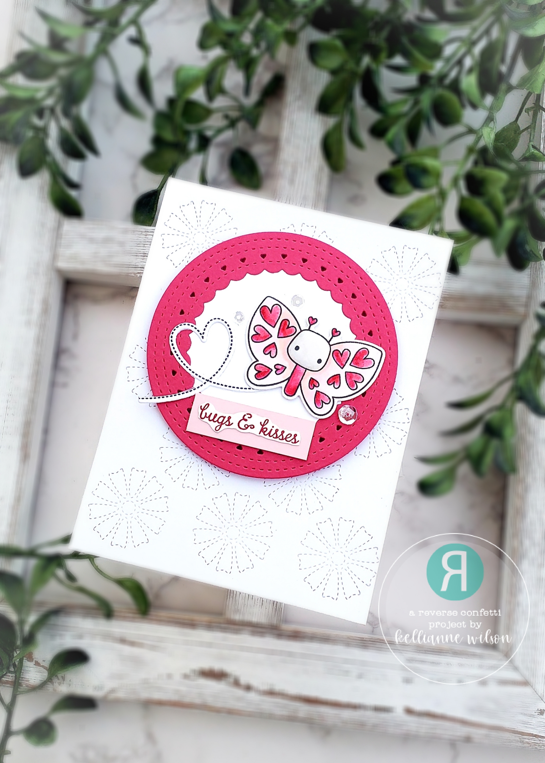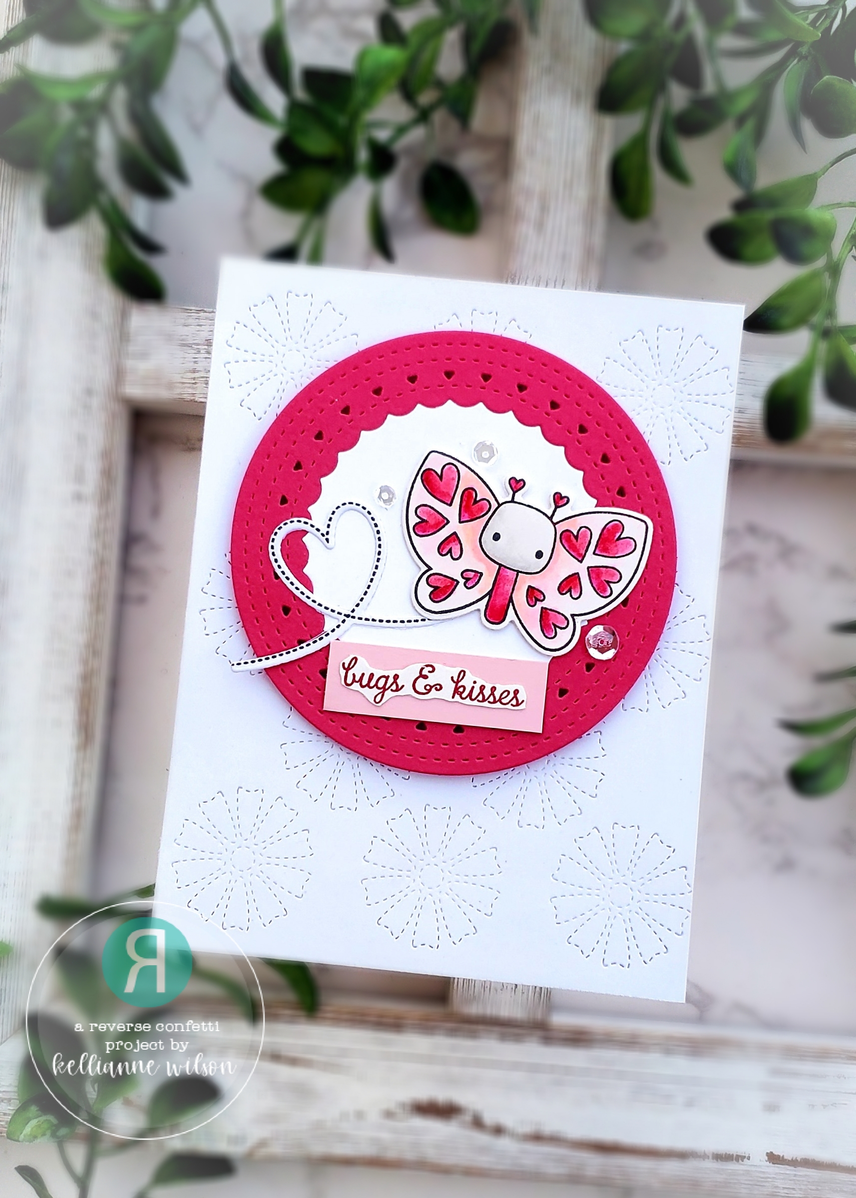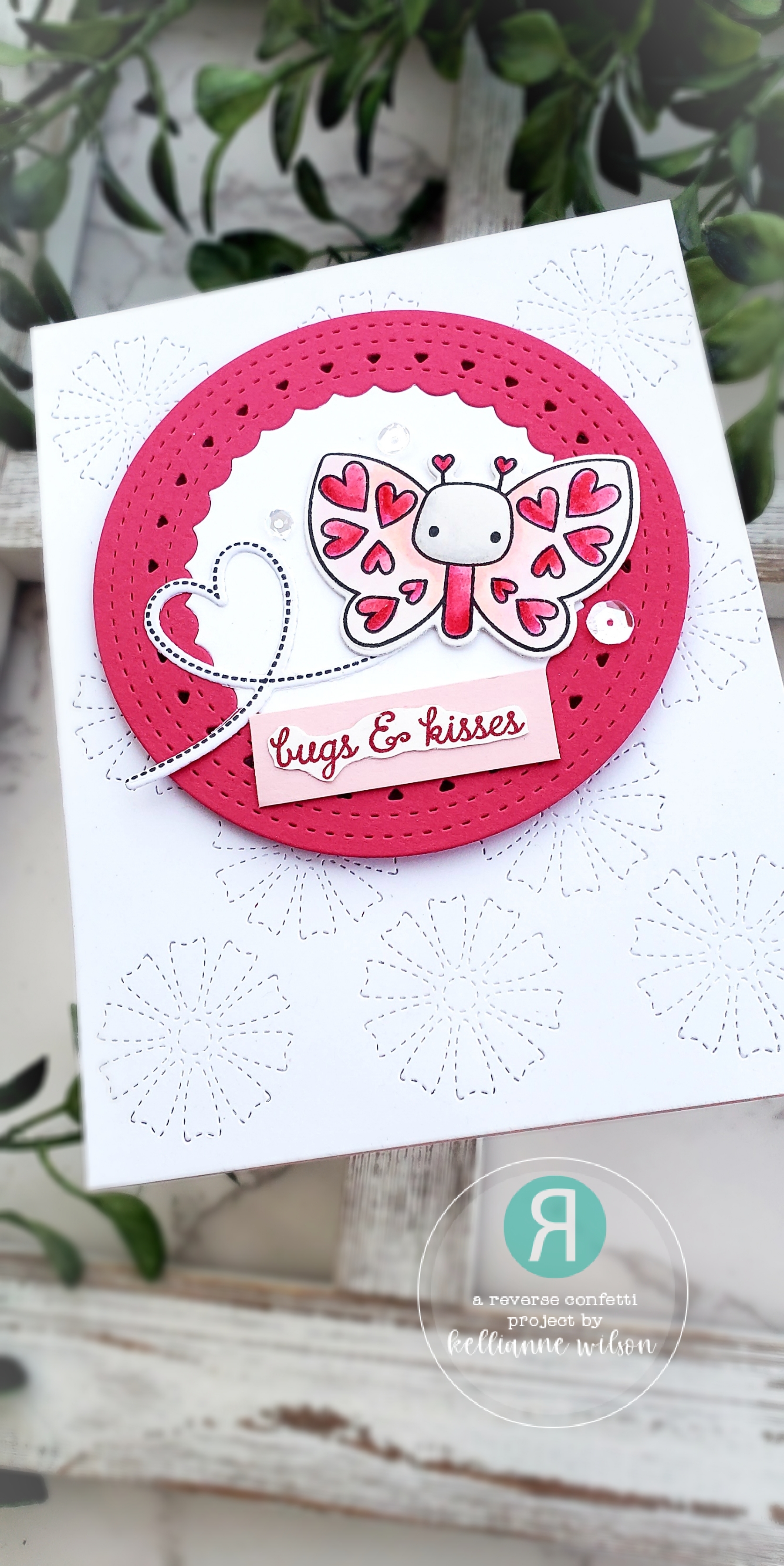 My card today features the Stitched Daisy Confetti Cut cover panel and the darling Love Bugs stamp set with coordinating dies