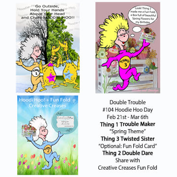 Happy Monday everyone! Today starts a new challenge over at Double Trouble and we want to see some Spring and some fun folds!