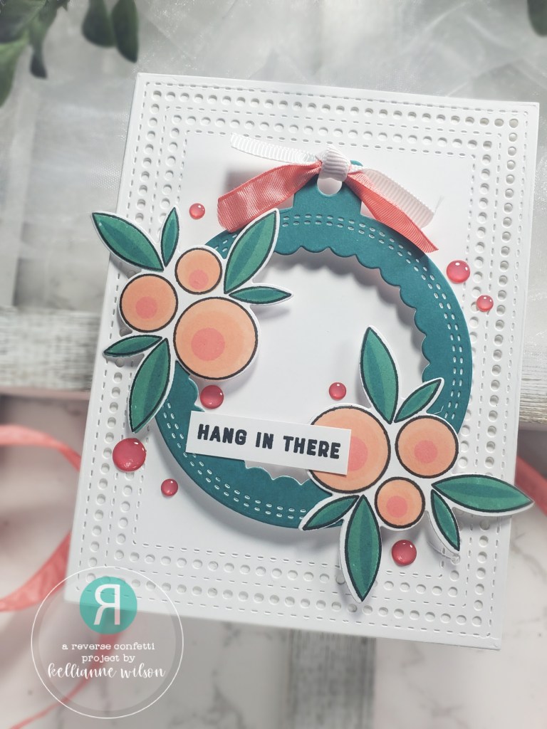 That tag would have been perfect to fill with shaker bits and make this a shaker card, but I decided to leave it a bit more simple, being that it is a “hang in there” card. I will definitely be making it into a shaker in the near future though!