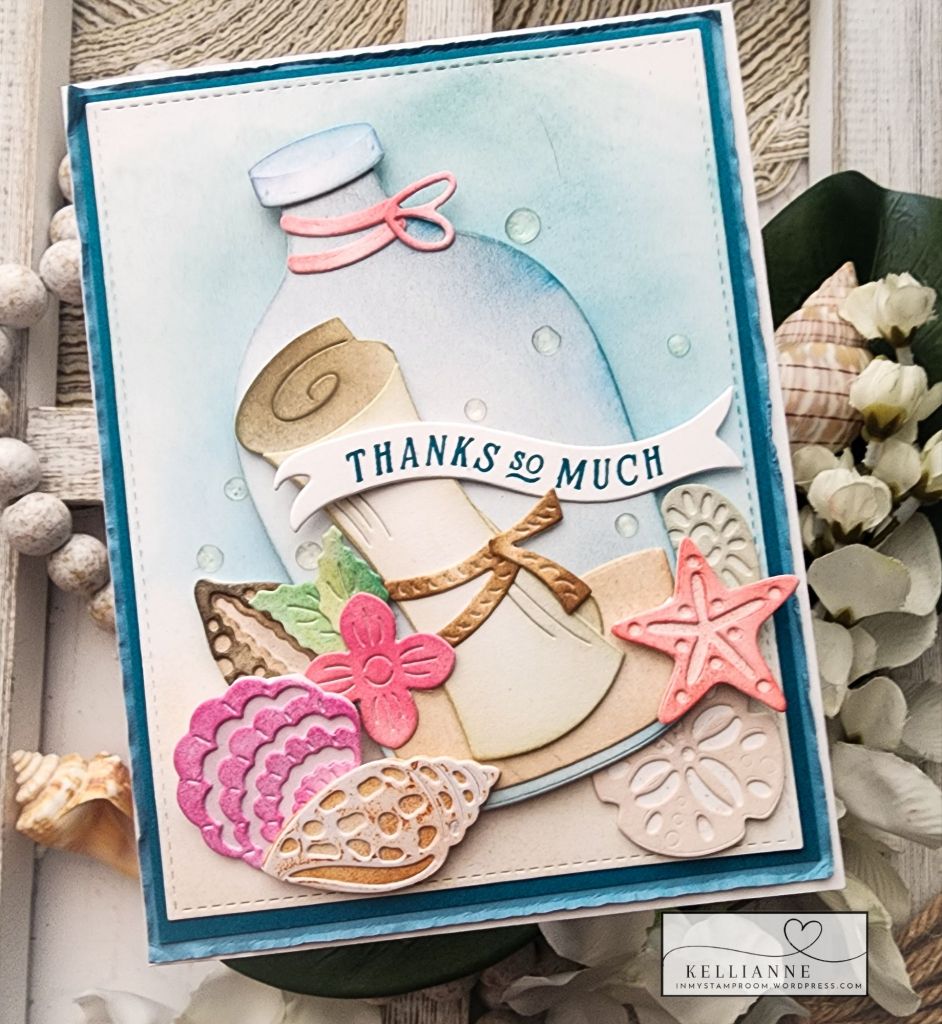 I got these adorable Hero Arts die sets for my birthday in December and I was so excited to finally make a card with them! The dies used are “Message in a Bottle” and “Summer by the Shore”