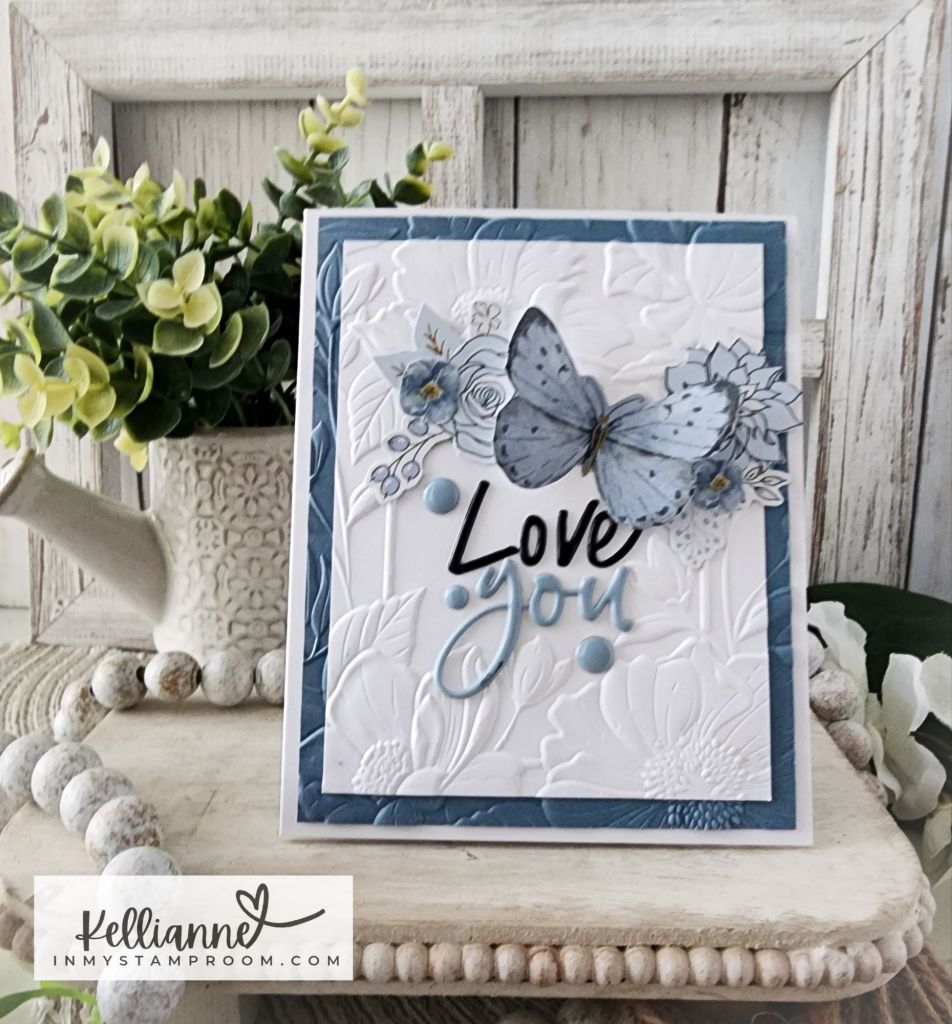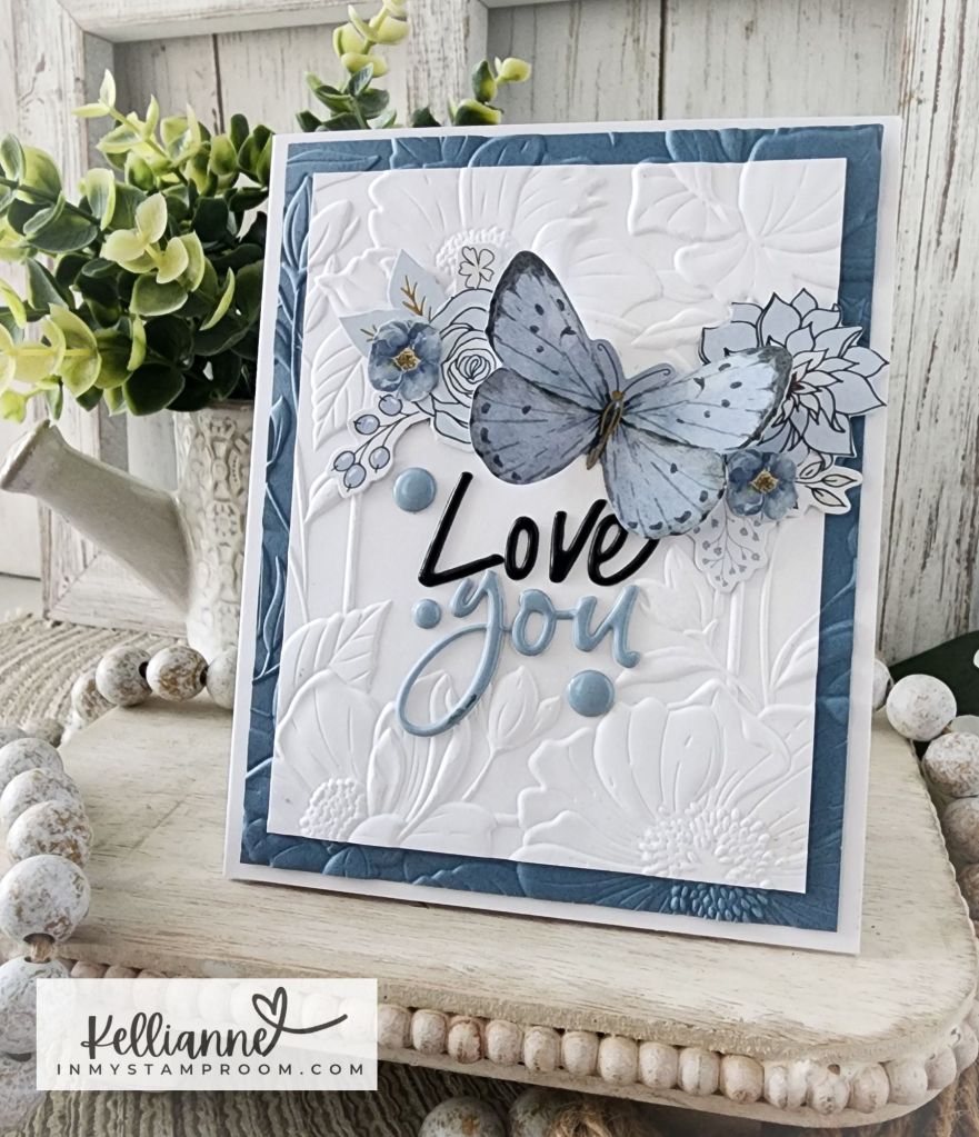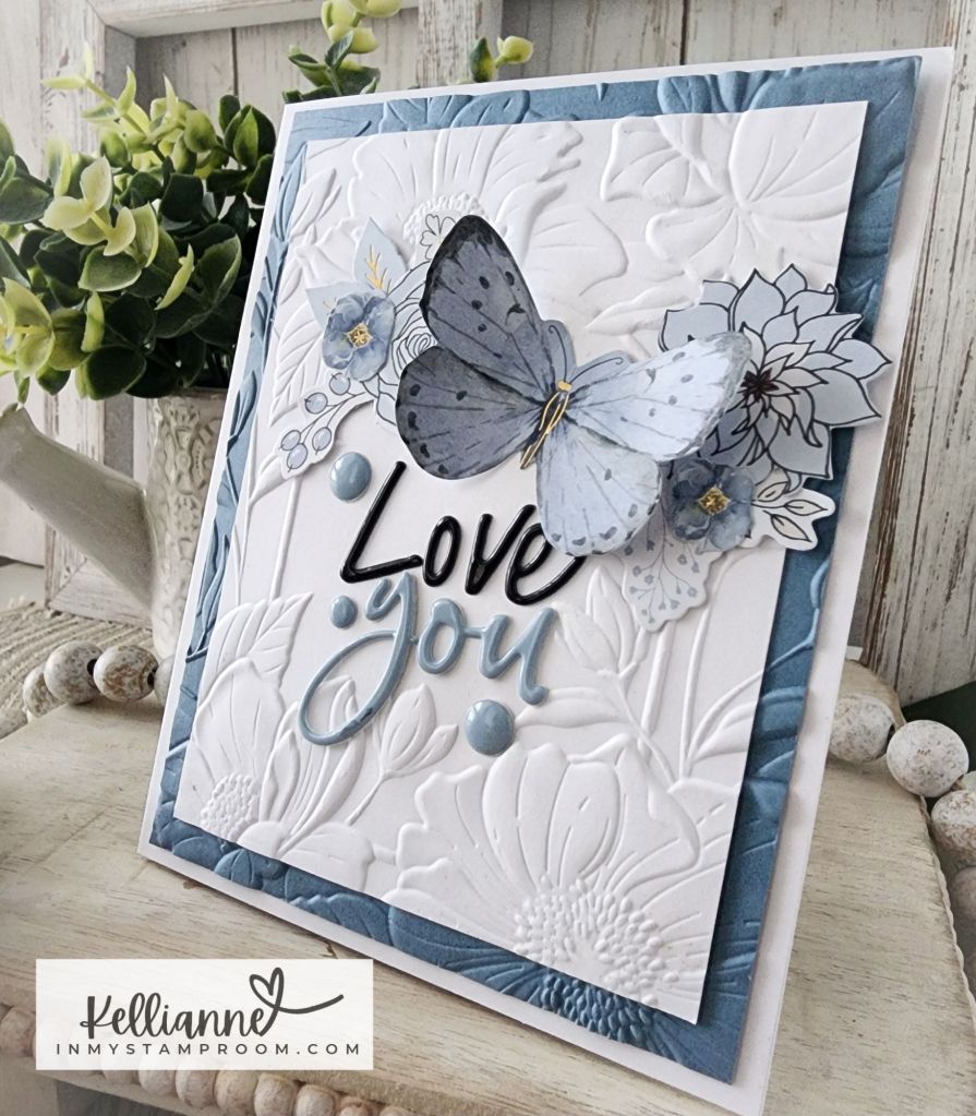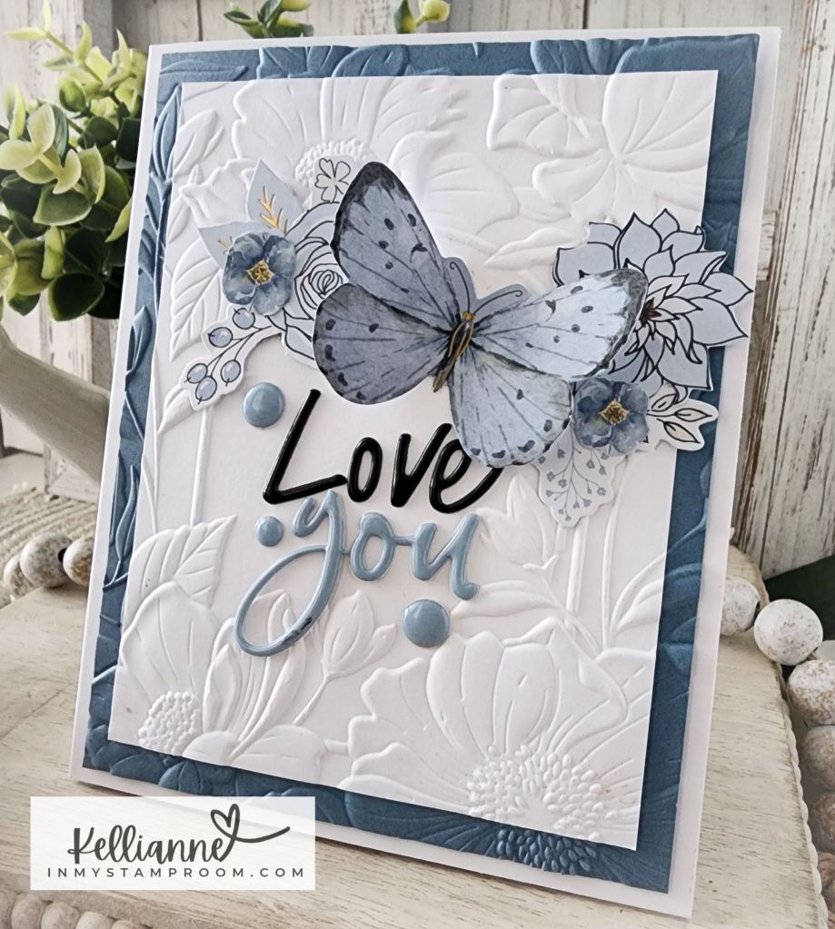 I used the big blue butterfly as my main focal point to go along with the challenge at Just Add Ink – to add something wings