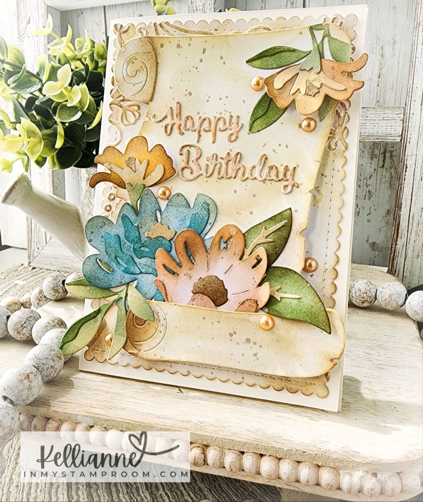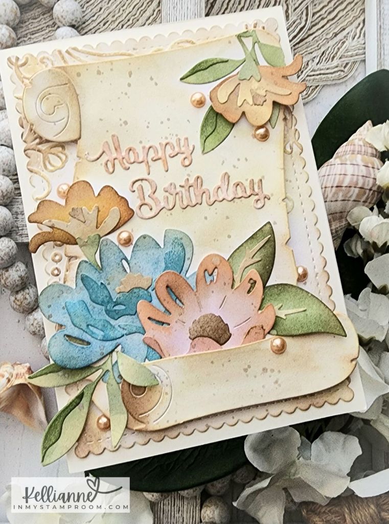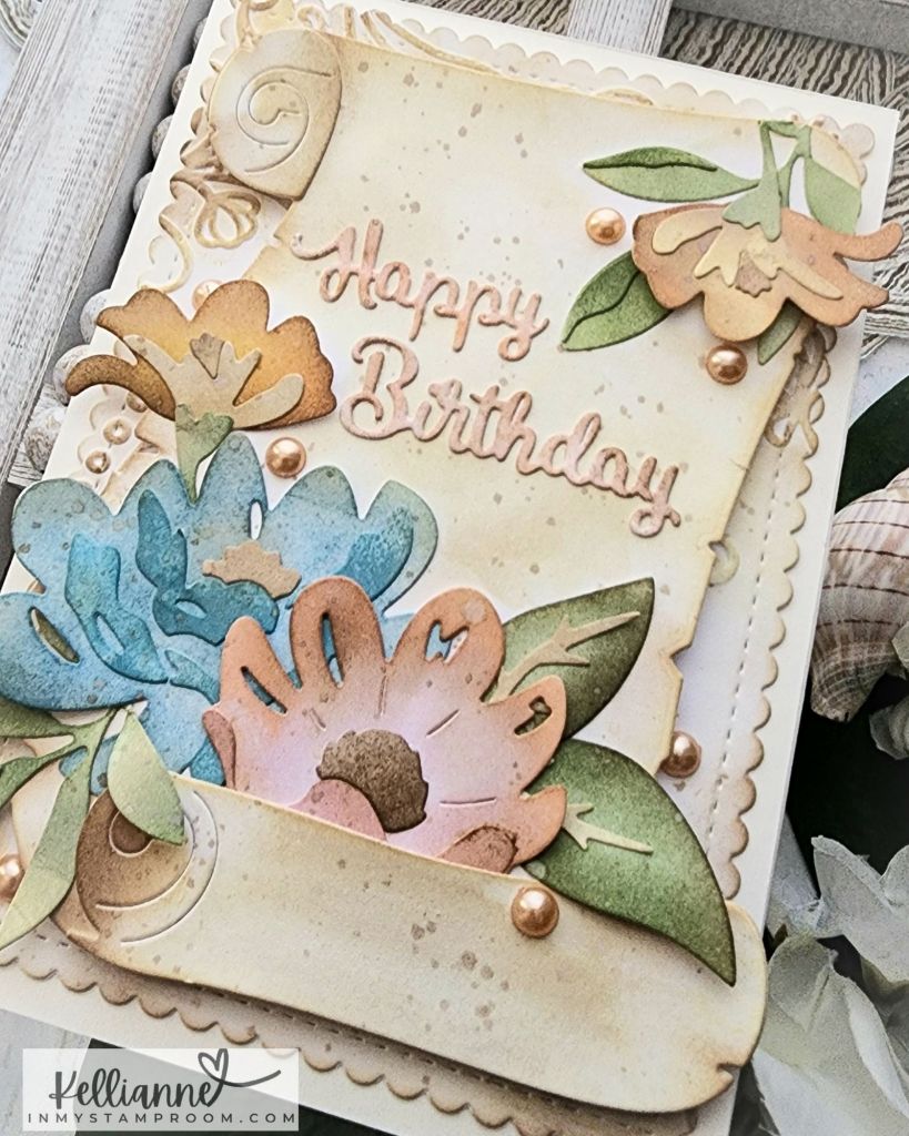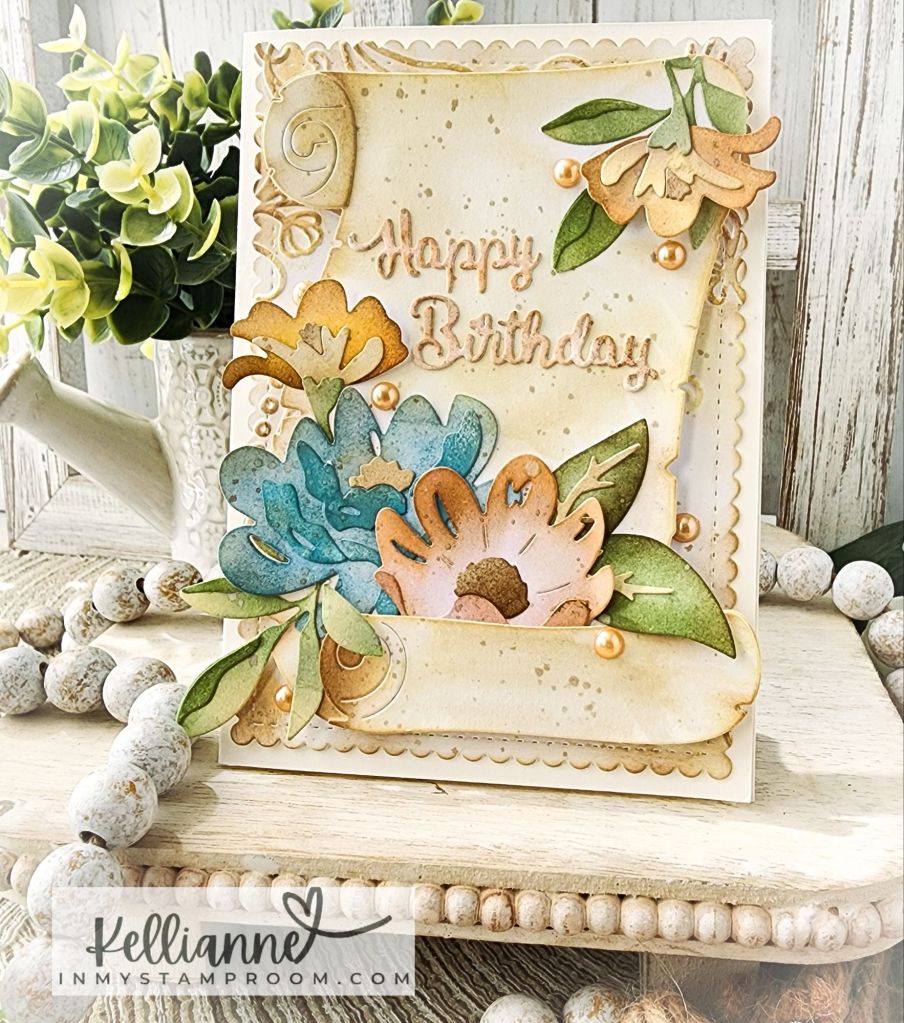 After die cutting and shading everything, I tucked all the floral into the scroll and I just love how it turned out.