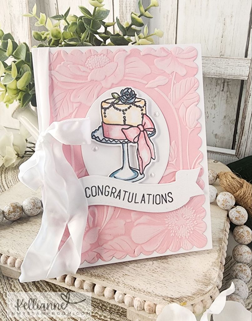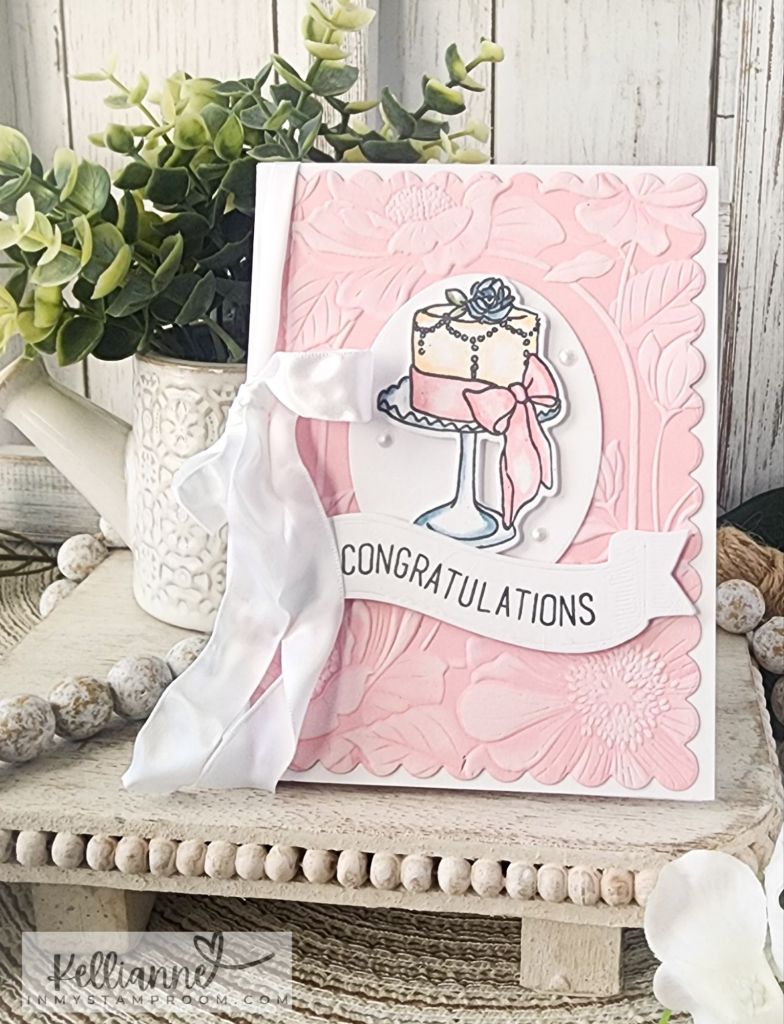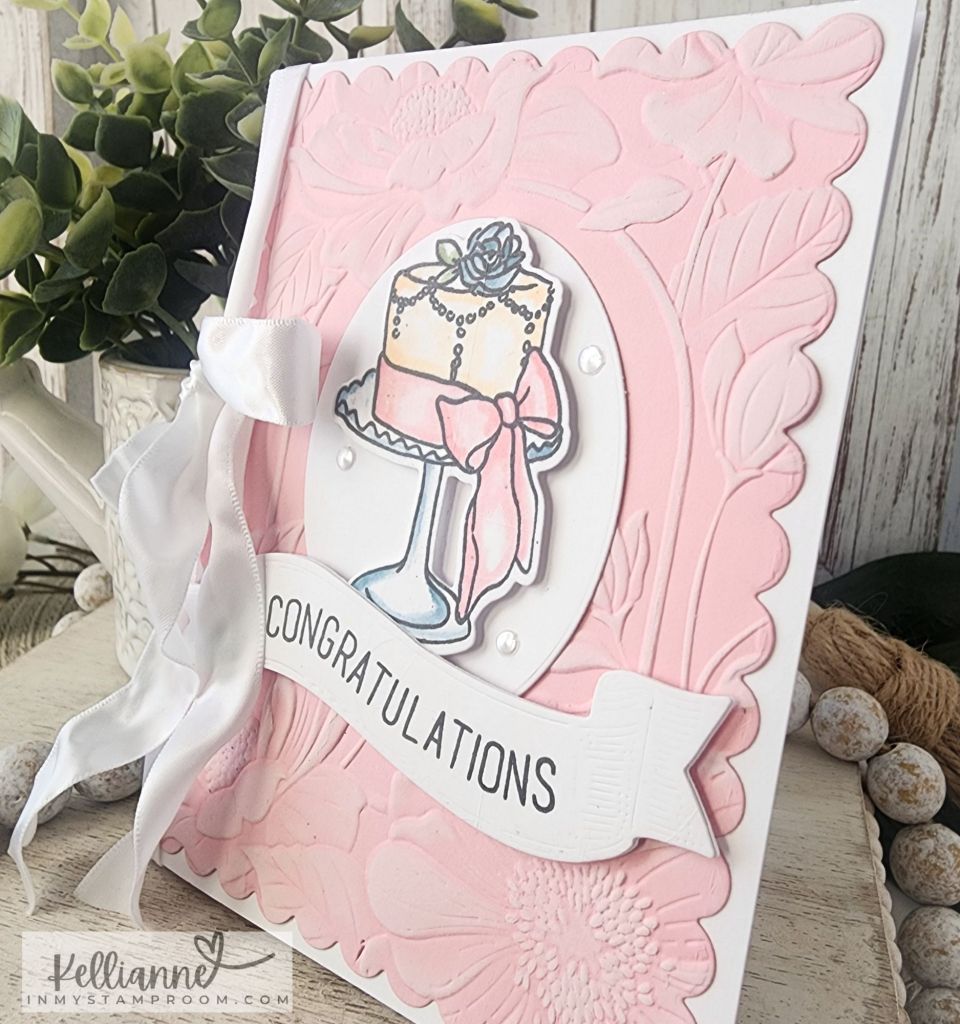 The pretty cake is from Altenew and I colored it in the soft blue, pink, and peach pastel colors