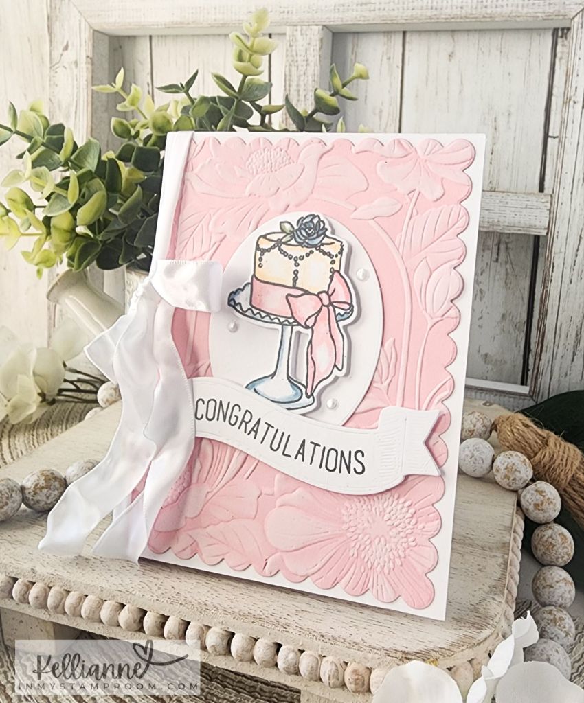 2 shapes or images (I put the wedding cake on an oval, inside the center arch of my embossing folder)