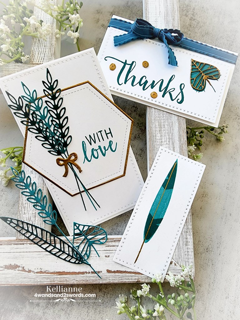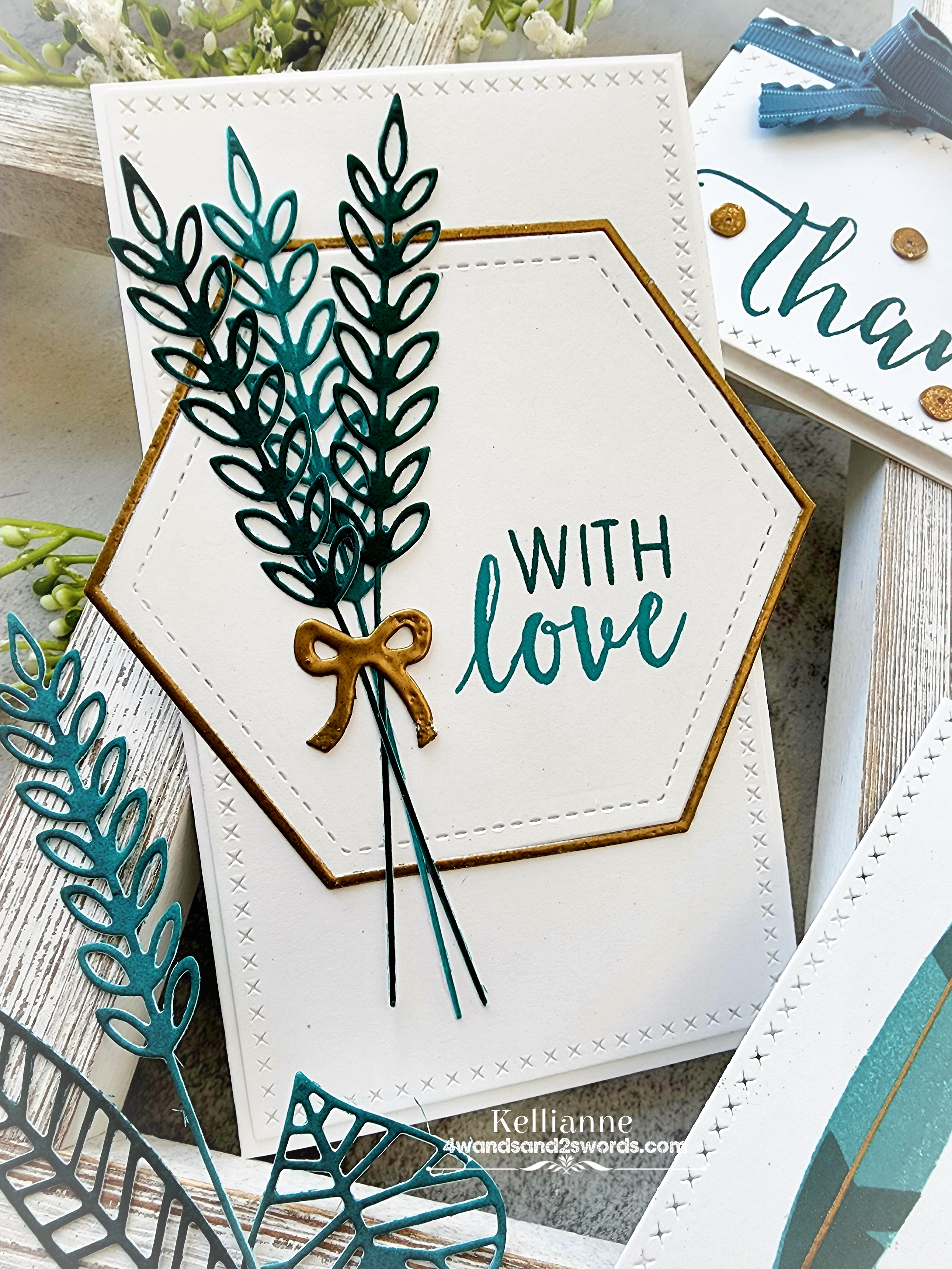 1- I didn’t realize I had that cute hexagon die that is part of the “you are lovely” dies! I can’t believe it’s sat for so long unused. I love that thin border! I embossed it with gold to go around the white hexagon