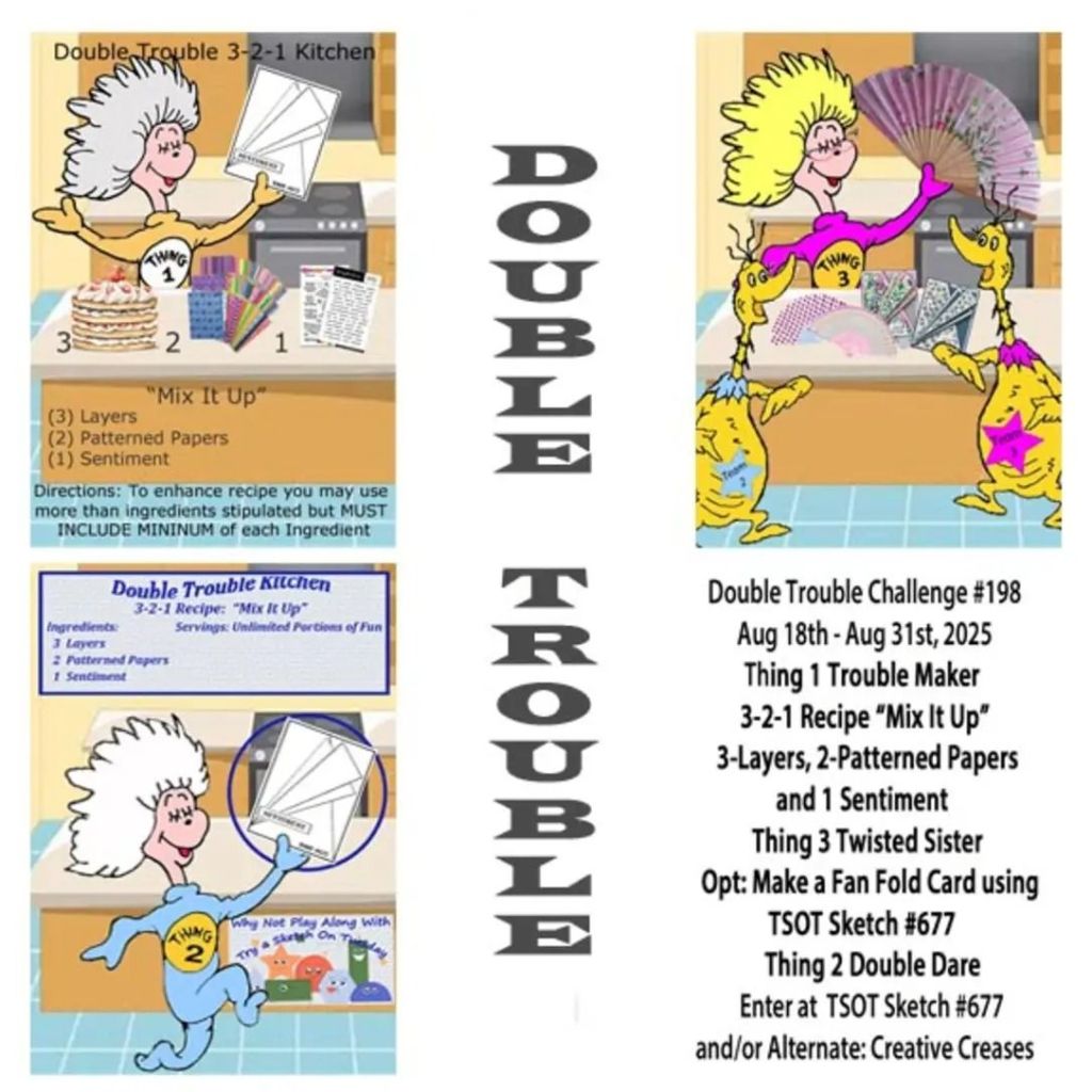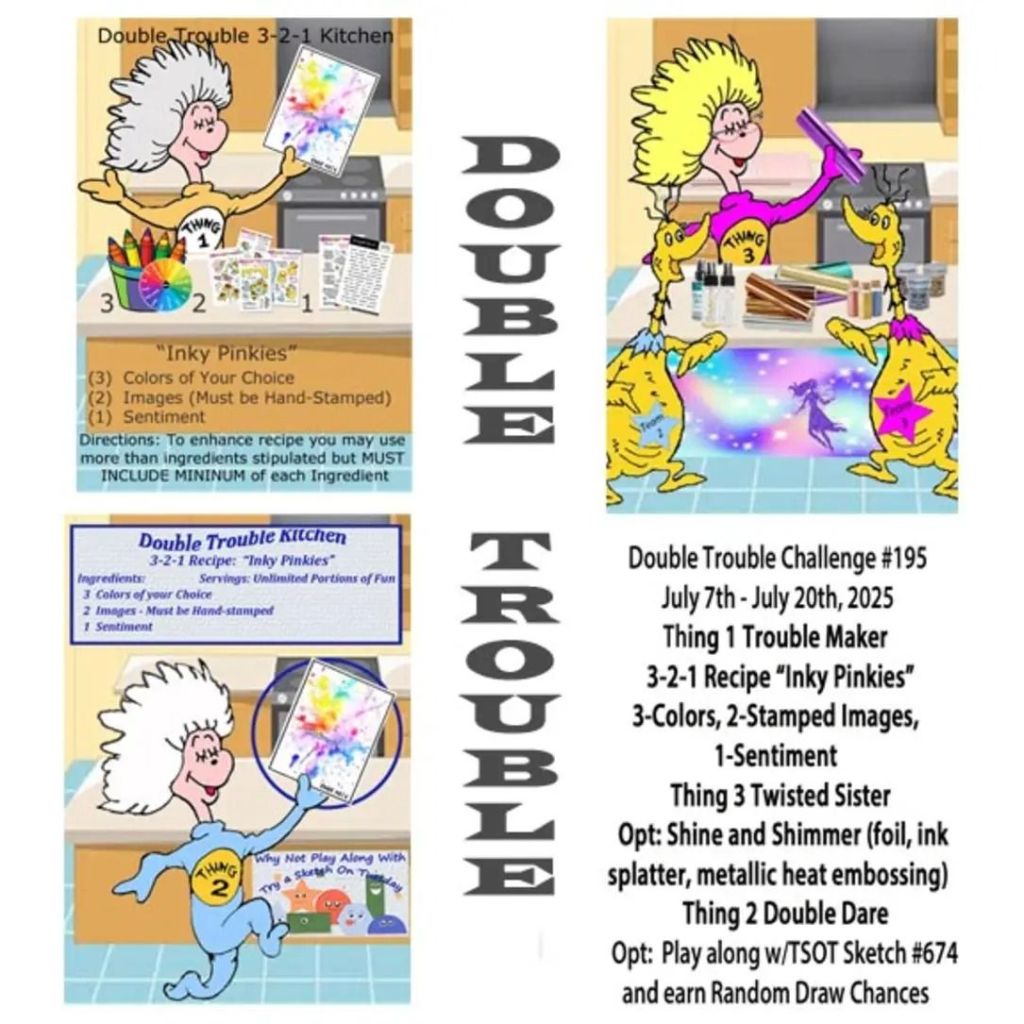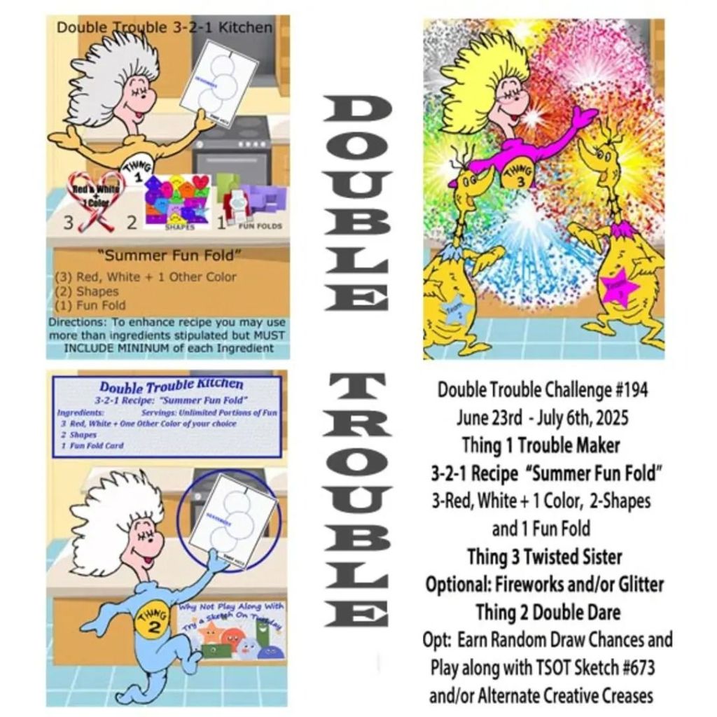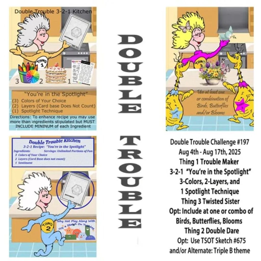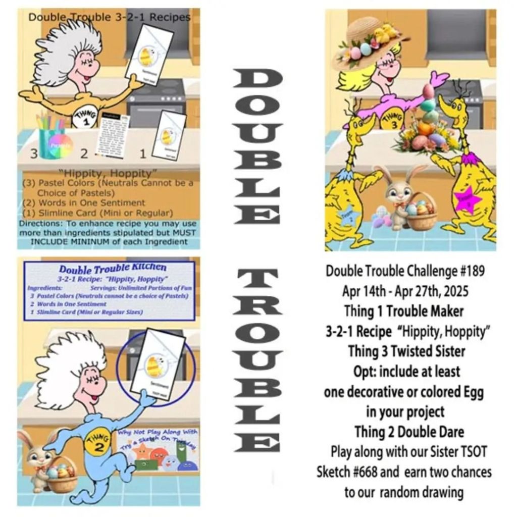My card today desires one of my favorite things – seashells!! This is for the new Double Trouble challenge that starts today