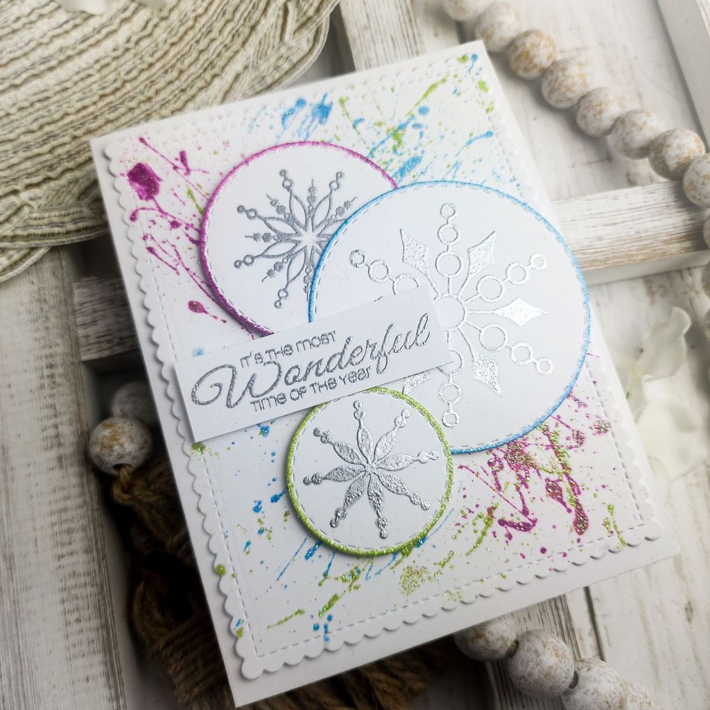 Thing 3 challenges you to fill in the aperture! You can do that with images or with shaker bits. I haven’t made a shaker card in a long time so I chose that option